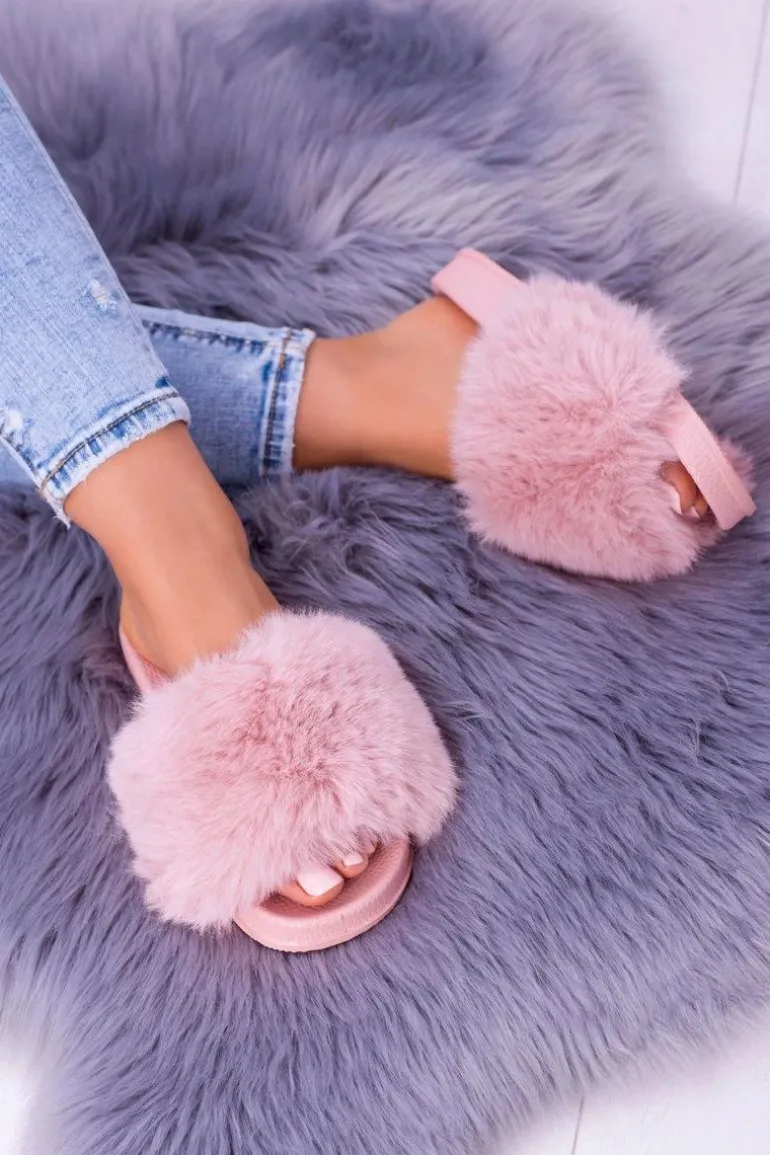 Lu Boo Damskie Klapki Z Futerkiem Różowe Fur XXL