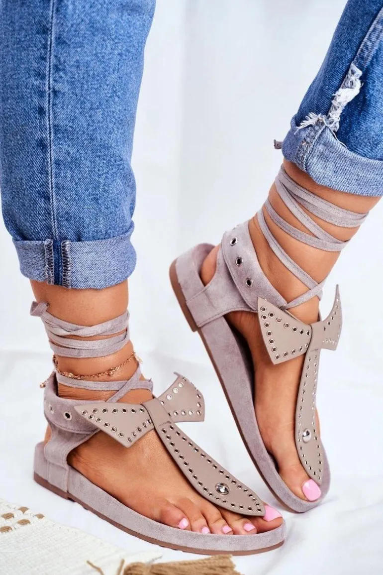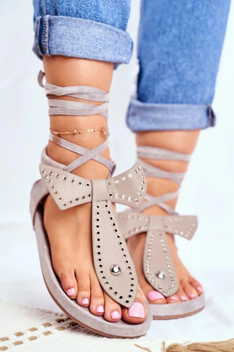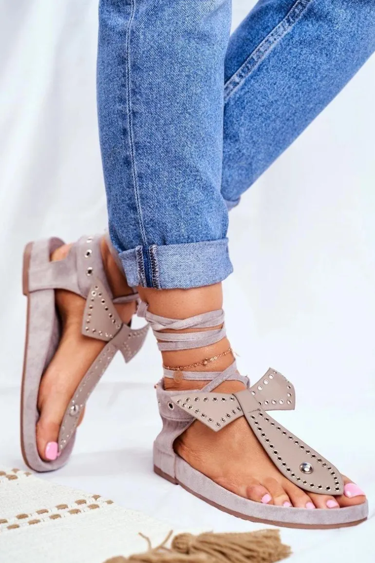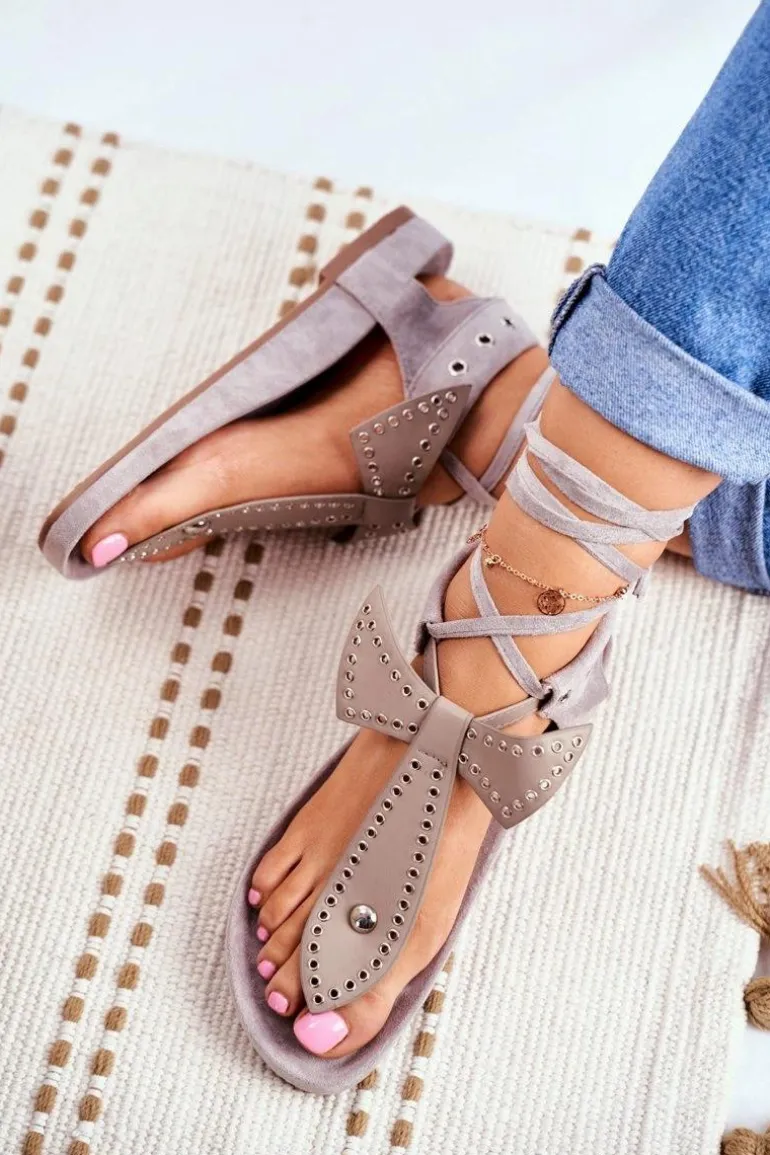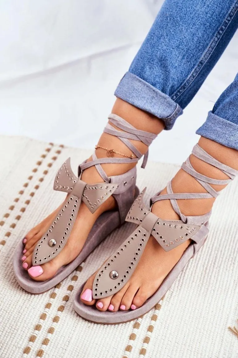 Lu Boo Damskie Szare Wiązane Sandały Japonki Mara