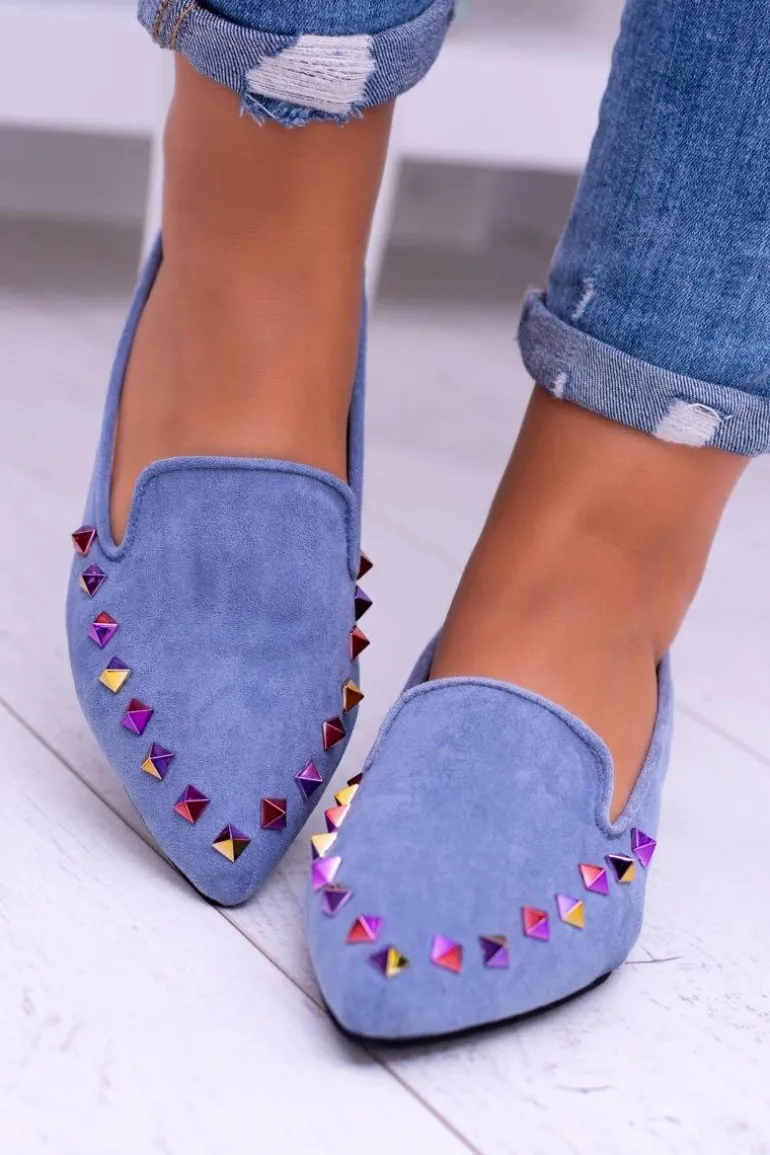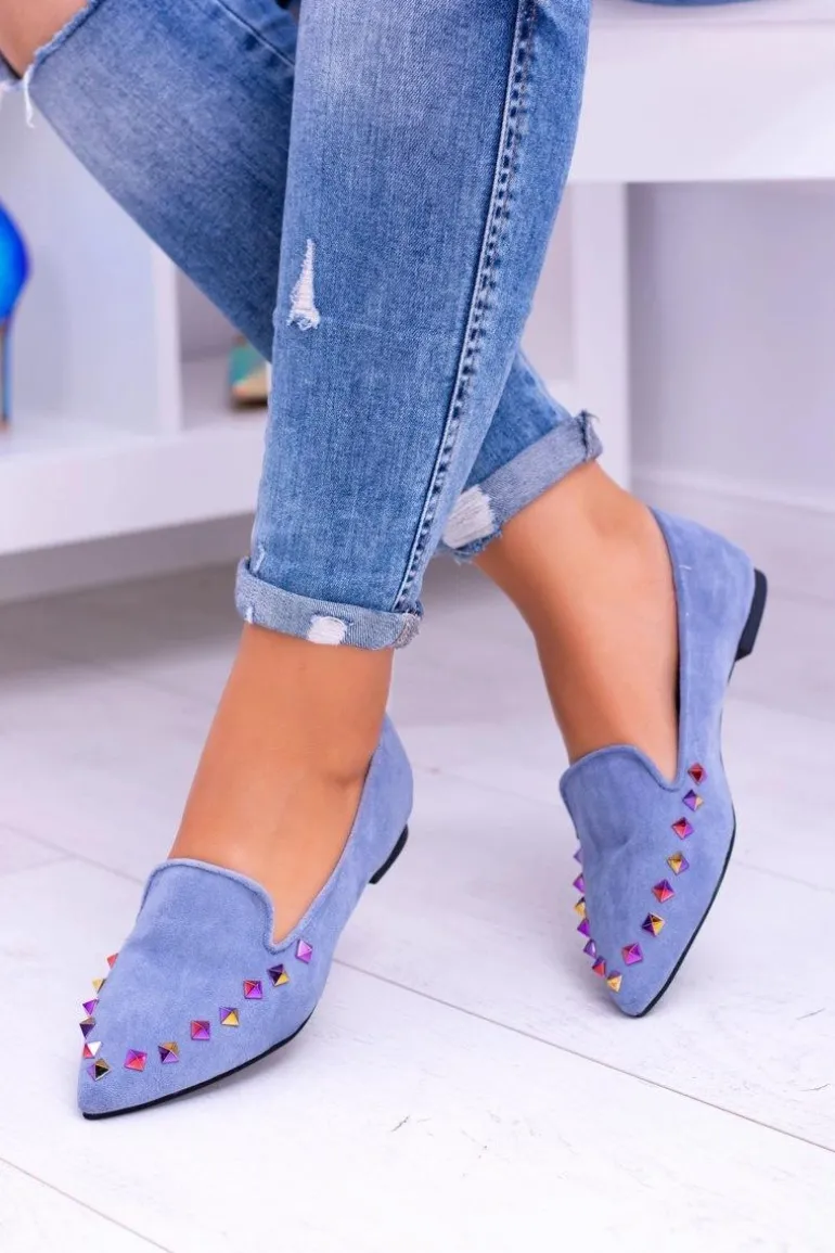Lekkie i pasujące do wszystkiego wsuwane lordsy od Lu Boo. Dostępne w kilku kolorach a wszystkie z nich zdobione są pięknie mieniącymi się dżetami w opalizującym kolorze. Profilowana miękka wkładka zapewni nam komfort przez długie godziny. Założysz je do każdej stylizacji. Lordsy Spike od Lu Boo to strzał w dziesiątkę!