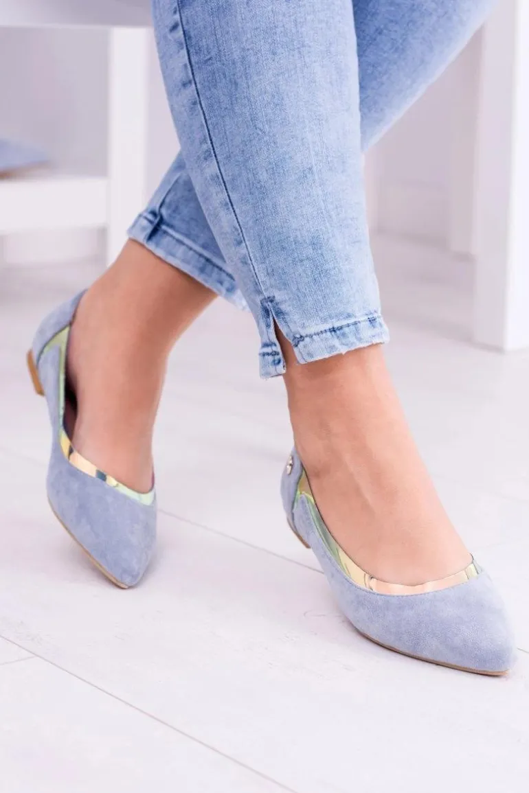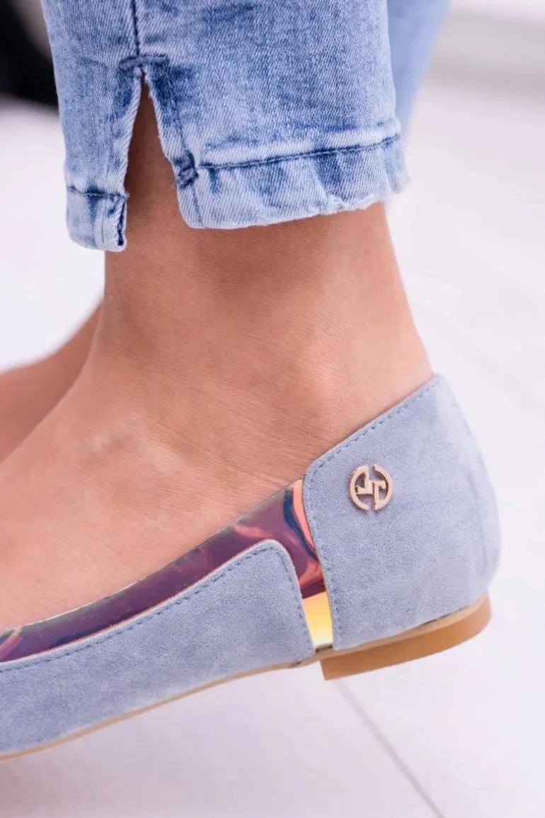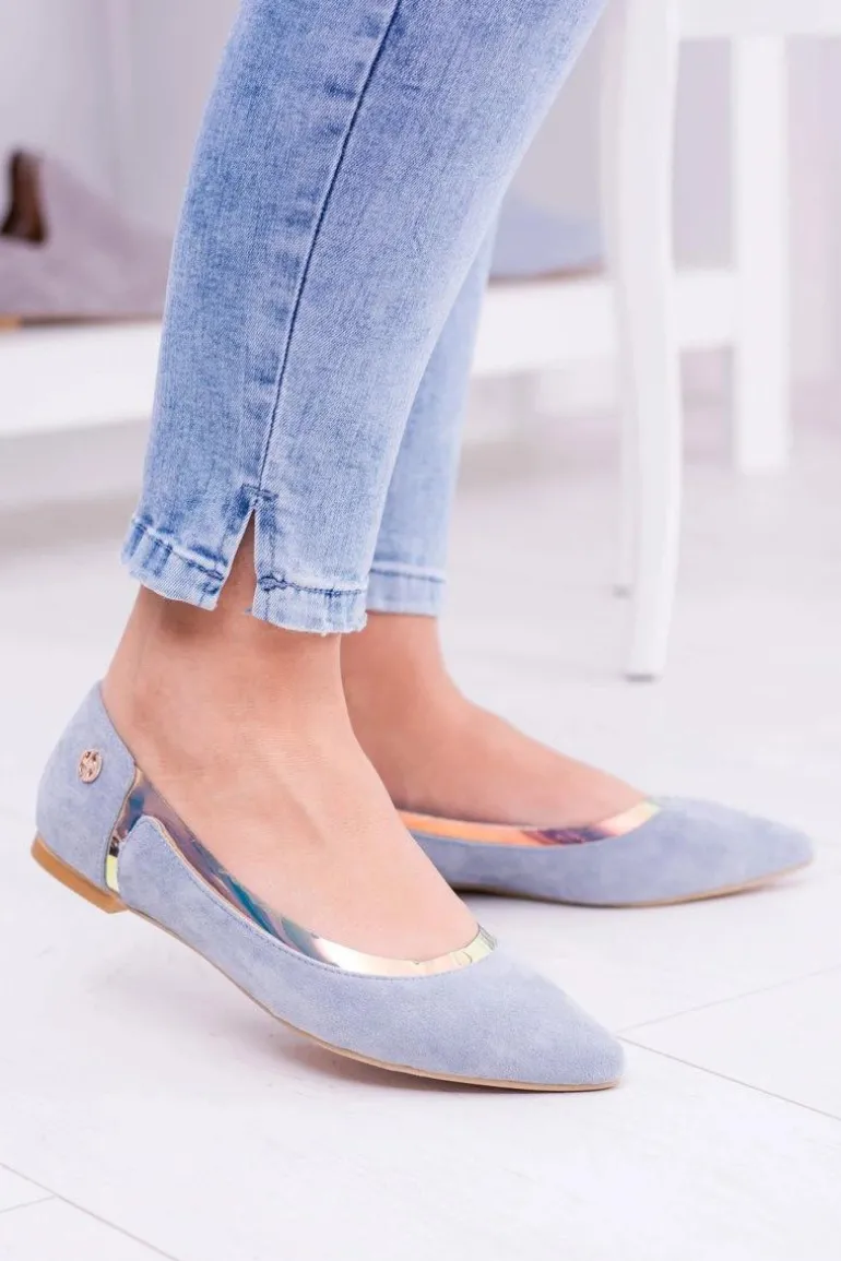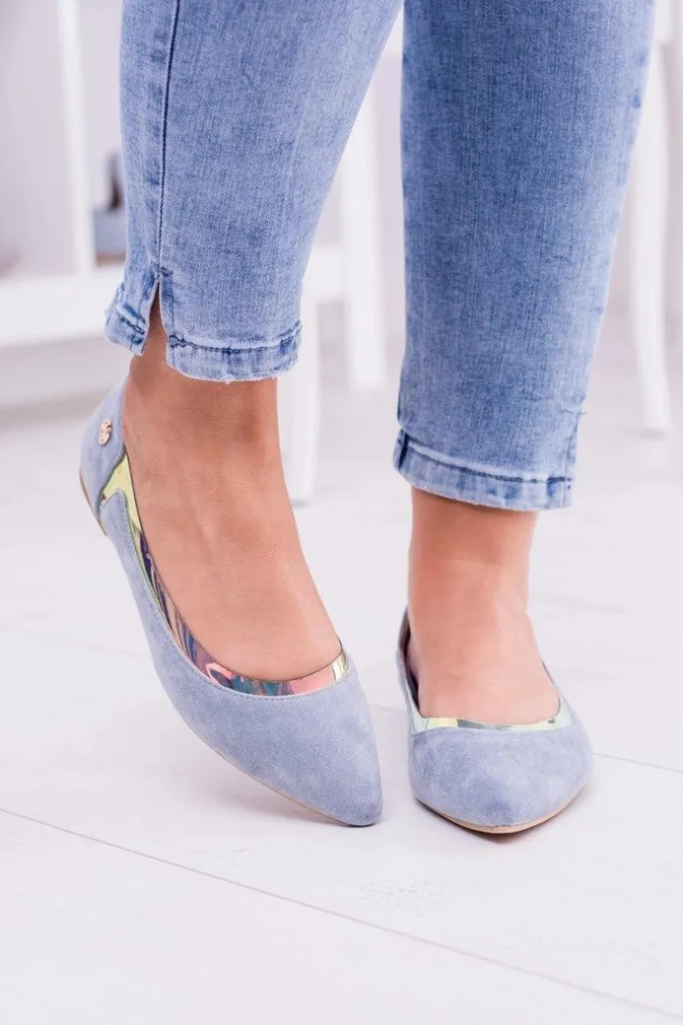 Lu Boo Niebieskie Transparentne Holograficzne Balerinki w Szpic Lison