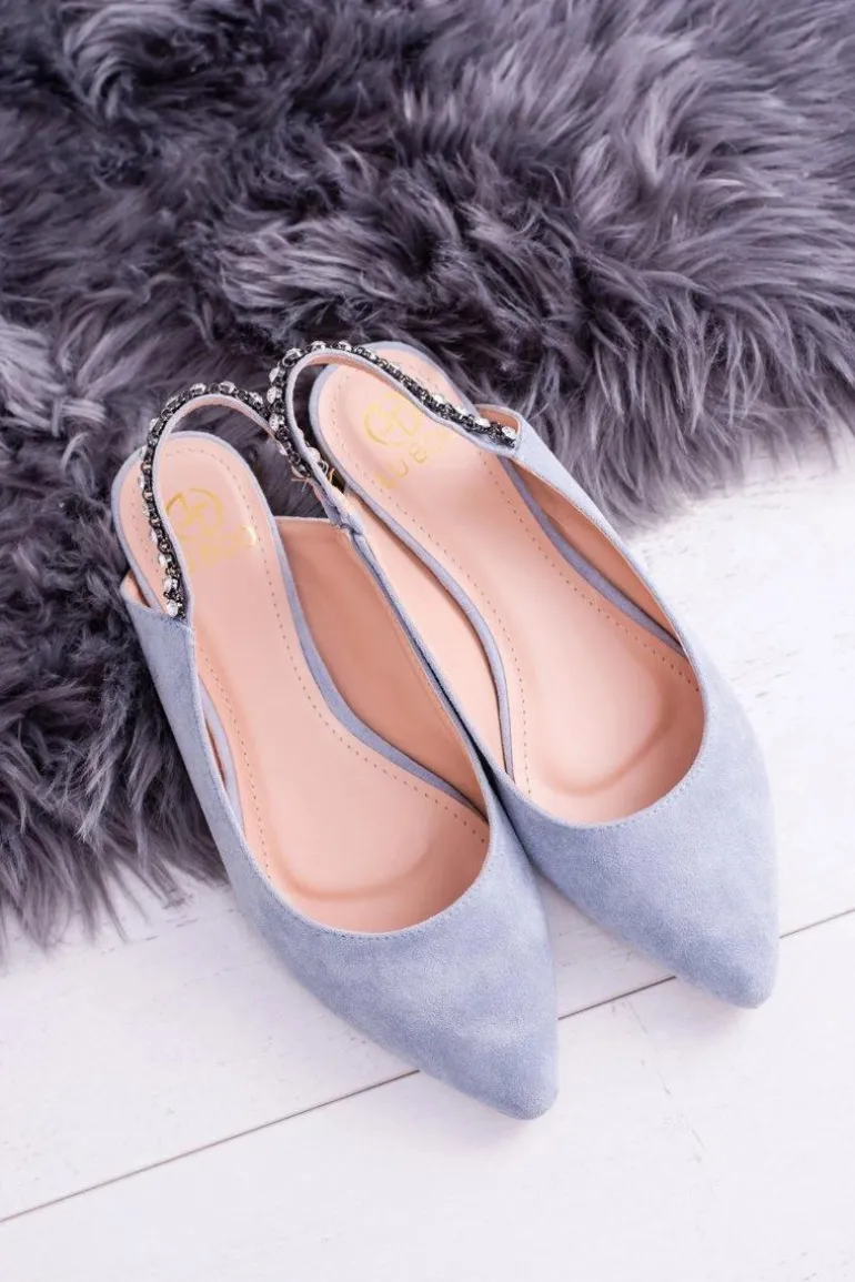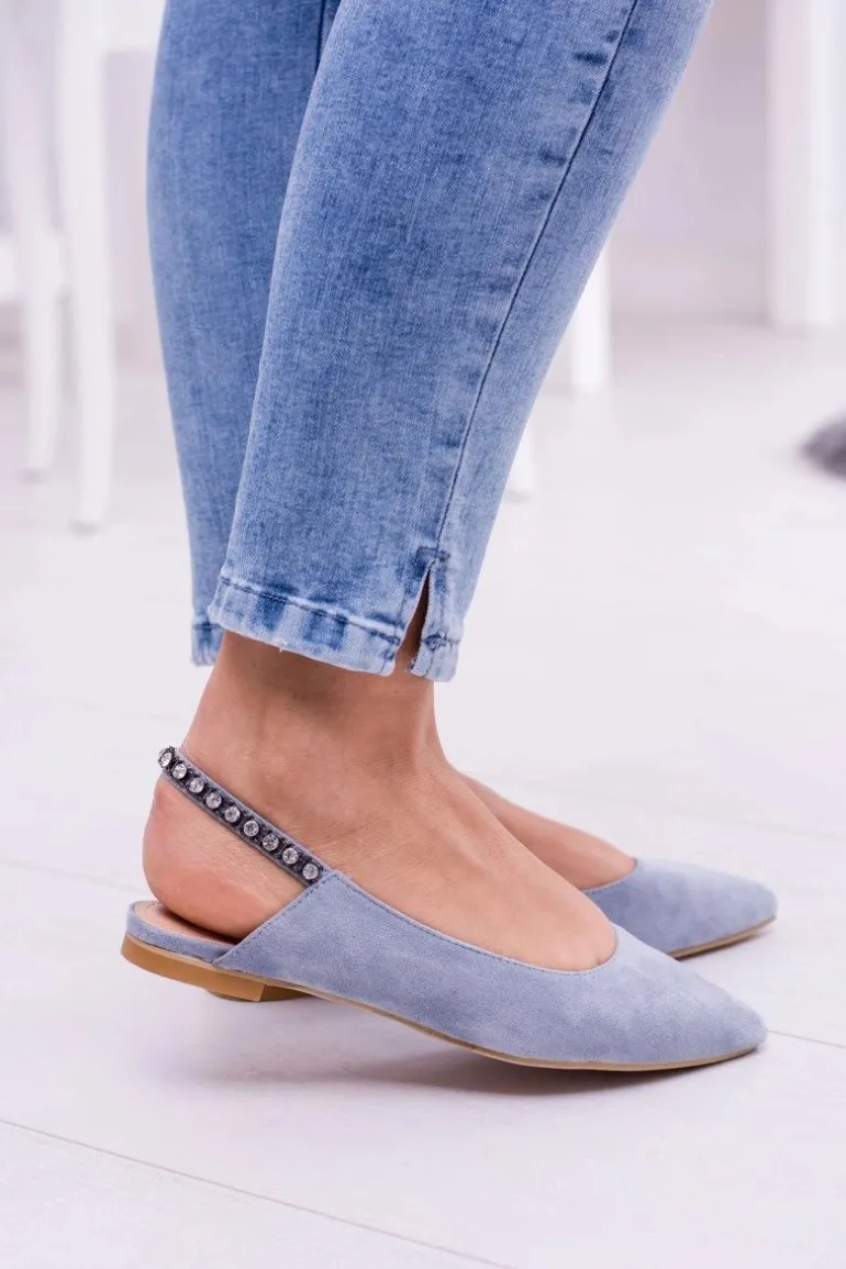 Lu Boo Niebieskie Zamszowe Balerinki w Szpic Cyrkonie Macron