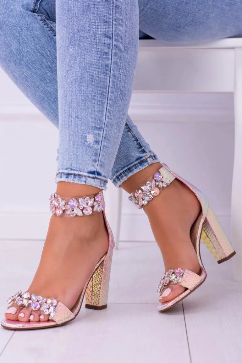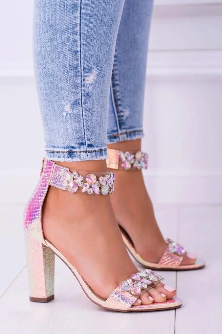 Lu Boo Opalizujące Sandały Champagne Cyrkonie Lambada