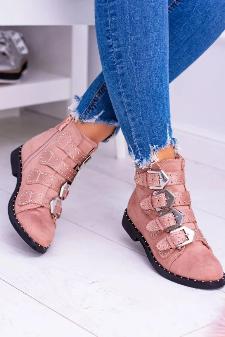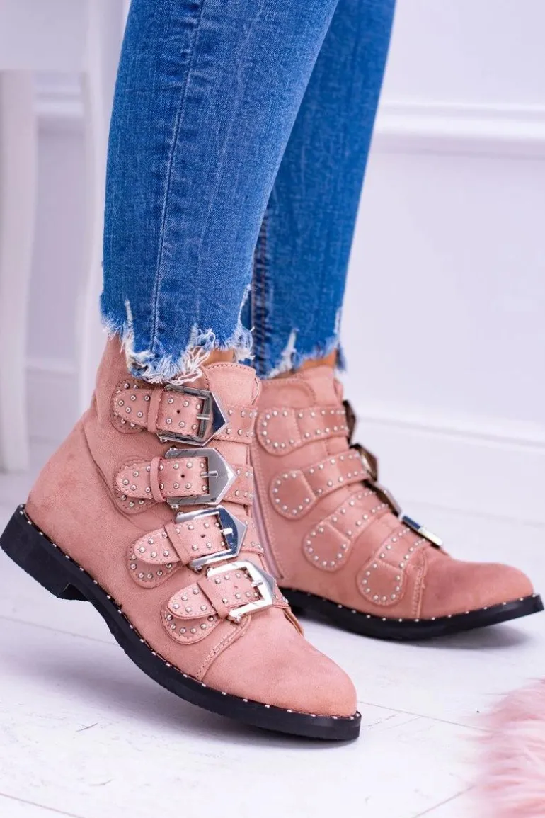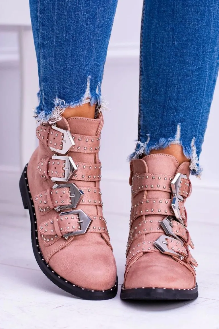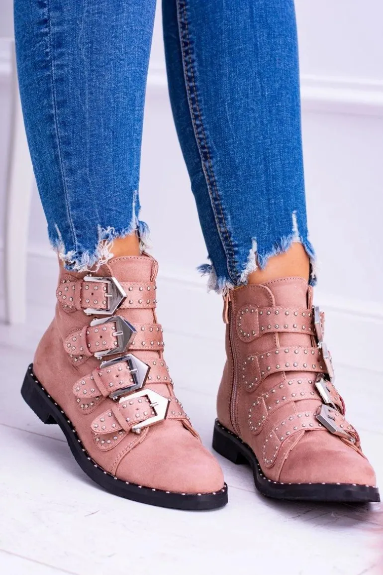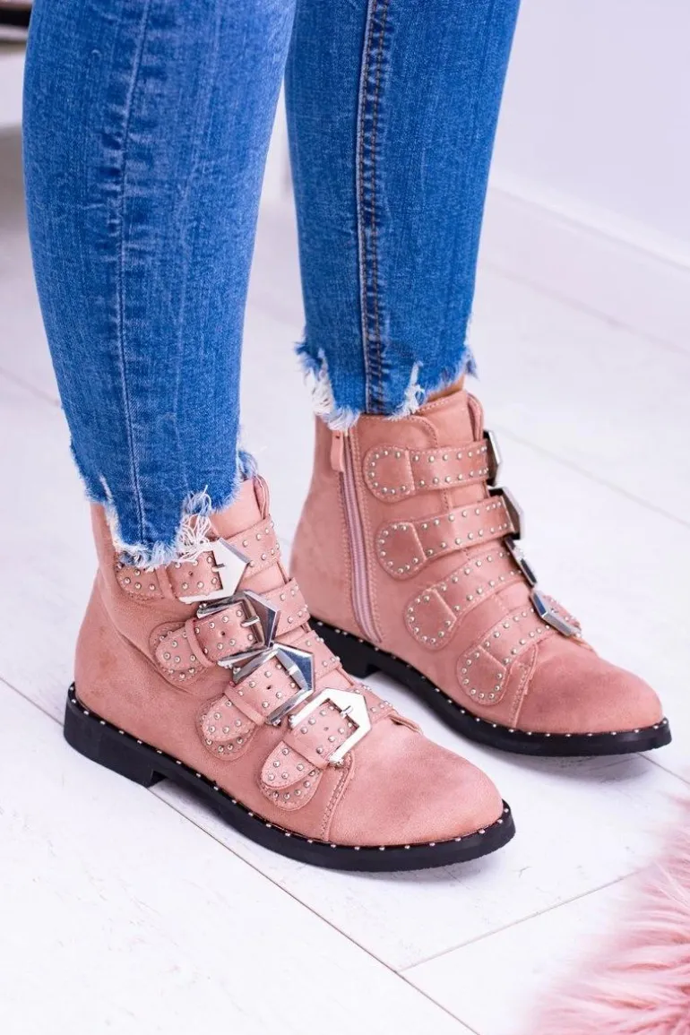 Lu Boo Różowe Botki Virginia Rock Star Nity Klamry Zamsz