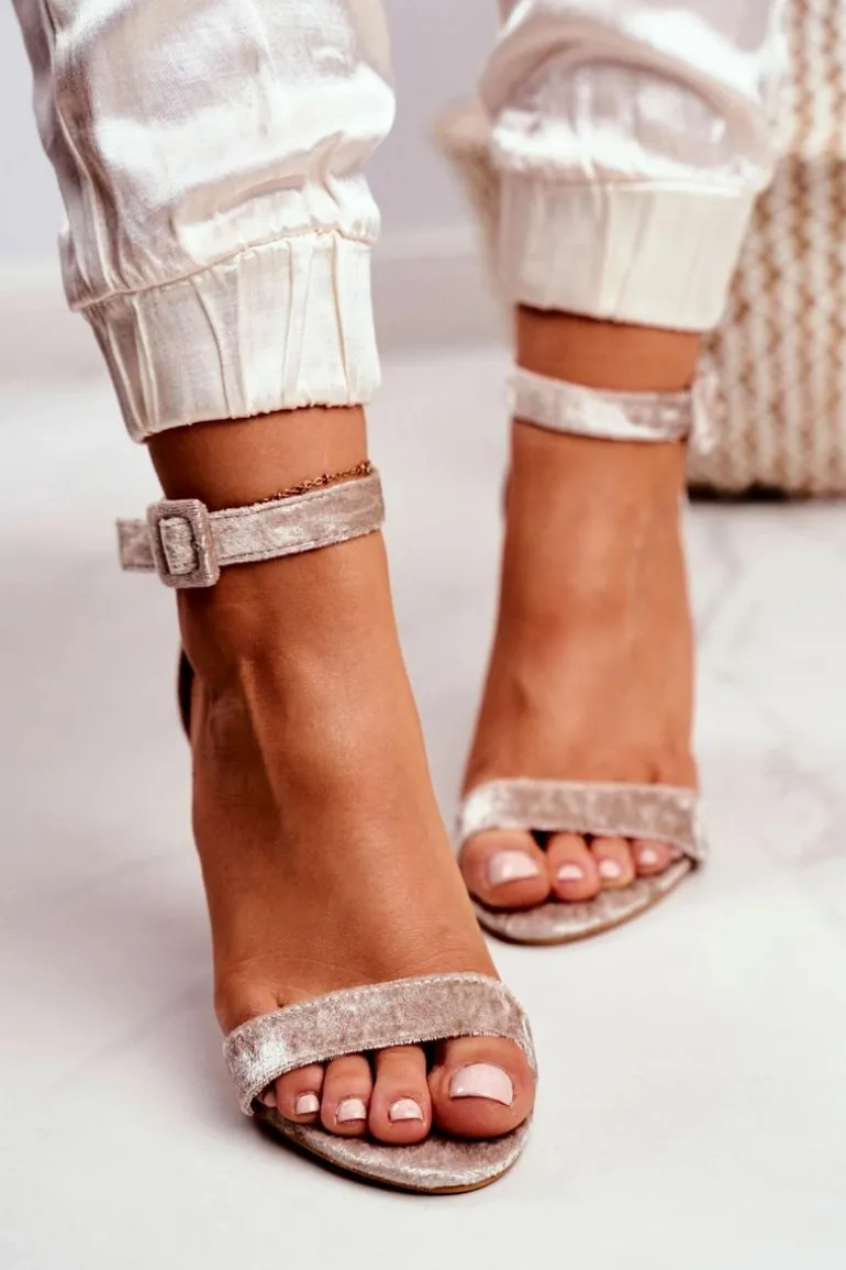 Lu Boo Sandałki Welurowe Beżowe Na Słupku Catherine