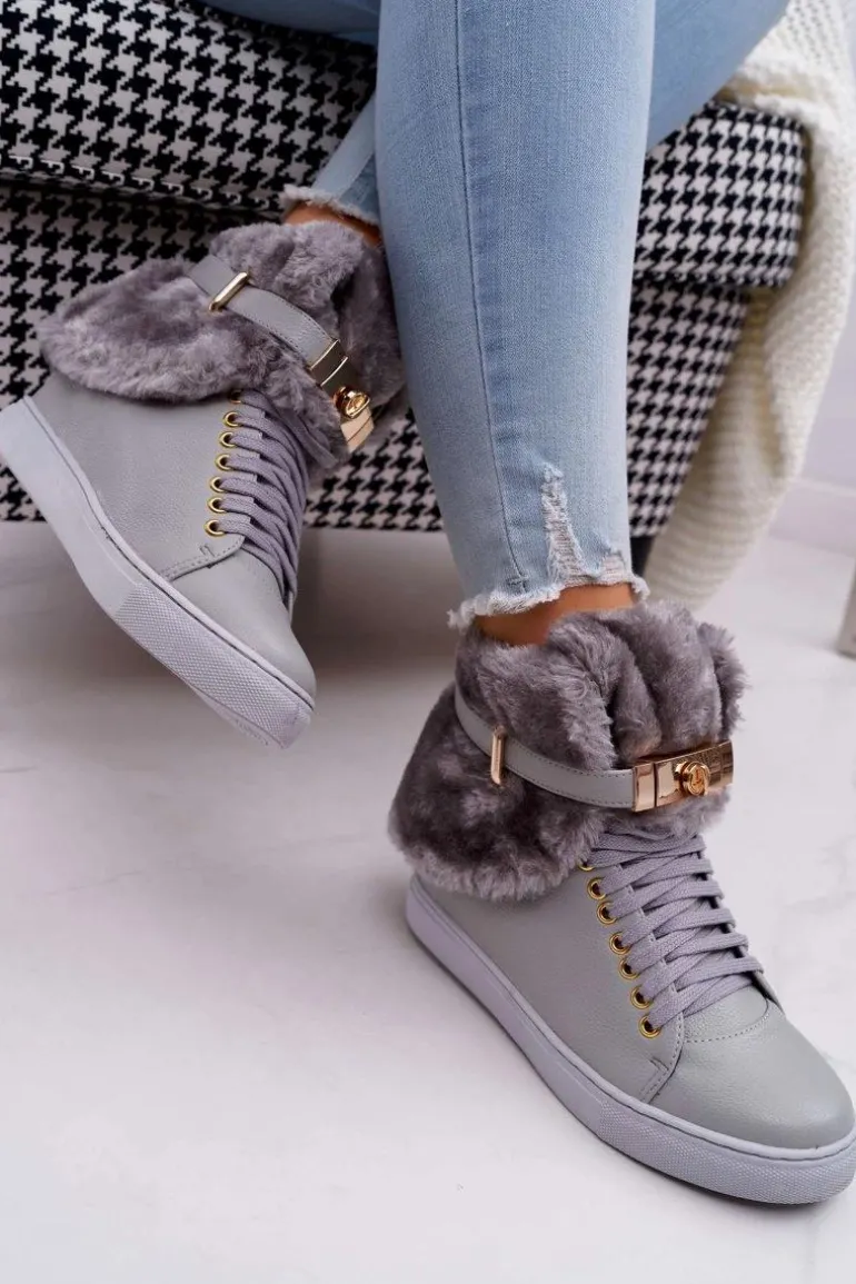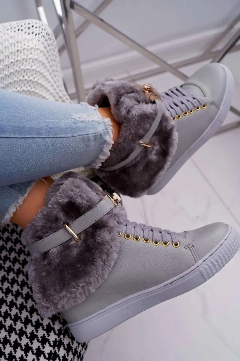 Buty, które pokochały kobiety na całym świecie, teraz dostępne w wersji zdobionej grubym futerkiem! Nie daj się zaskoczyć zimie i spraw sobie rozkosz podczas tych mroźnych dni. Buty noszone przez największe gwiazdy. Złote dodatki w postaci zamka oracz oczek idealnie wpasowują się w aktualne oraz nadchodzące trendy! Delikatny koturn zapewni Ci komfort podczas zimowych spacerów a delikatnie ocieplenie w postaci „Pluszowego misia” otuli twe stopy niczym puch. Skomponowanie idealnej stylizacji z tymi butami nie jest niczym trudnym.