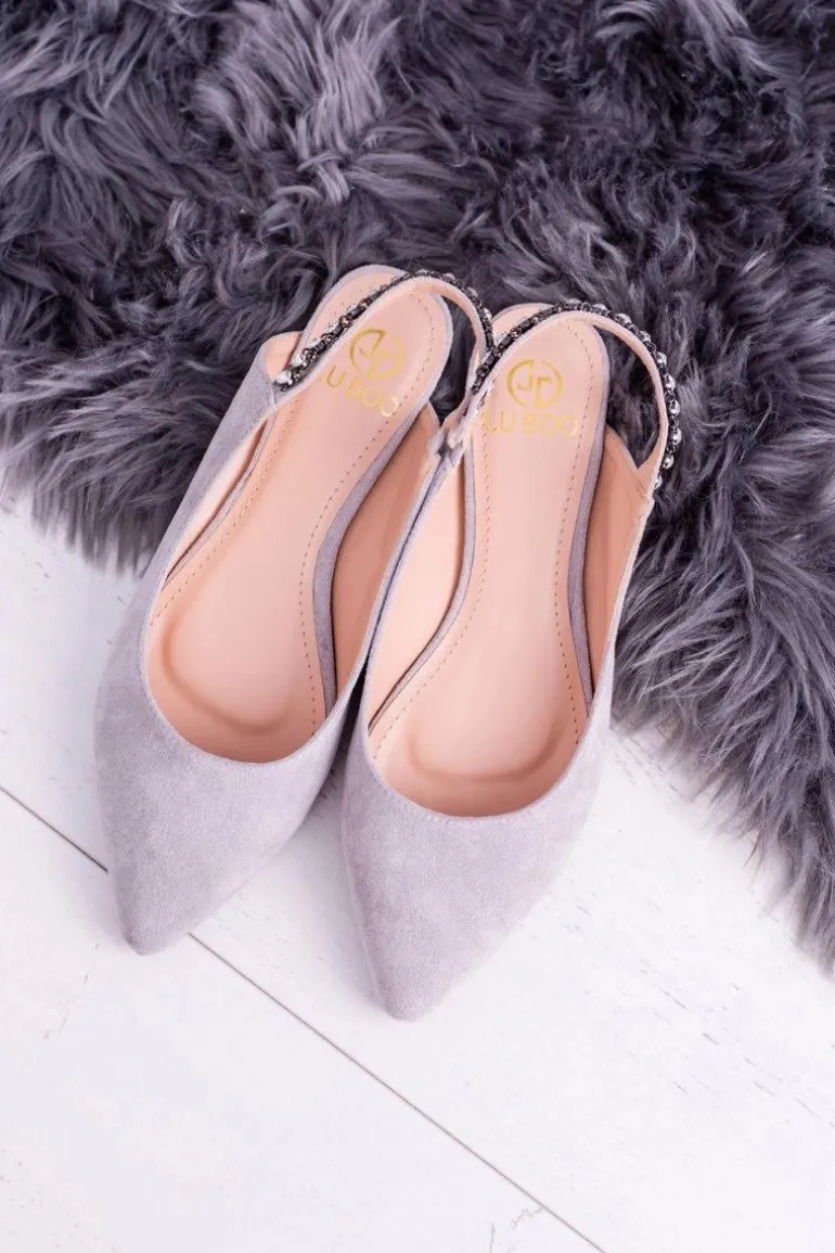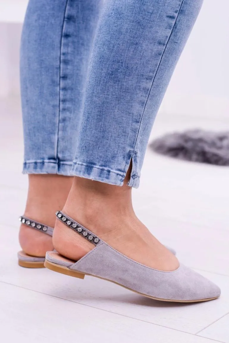 Lu Boo Szare Zamszowe Balerinki w Szpic Cyrkonie Macron