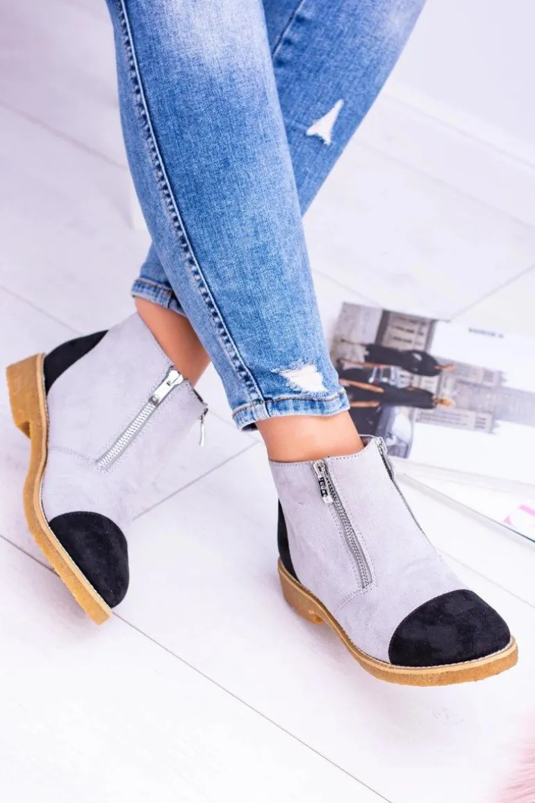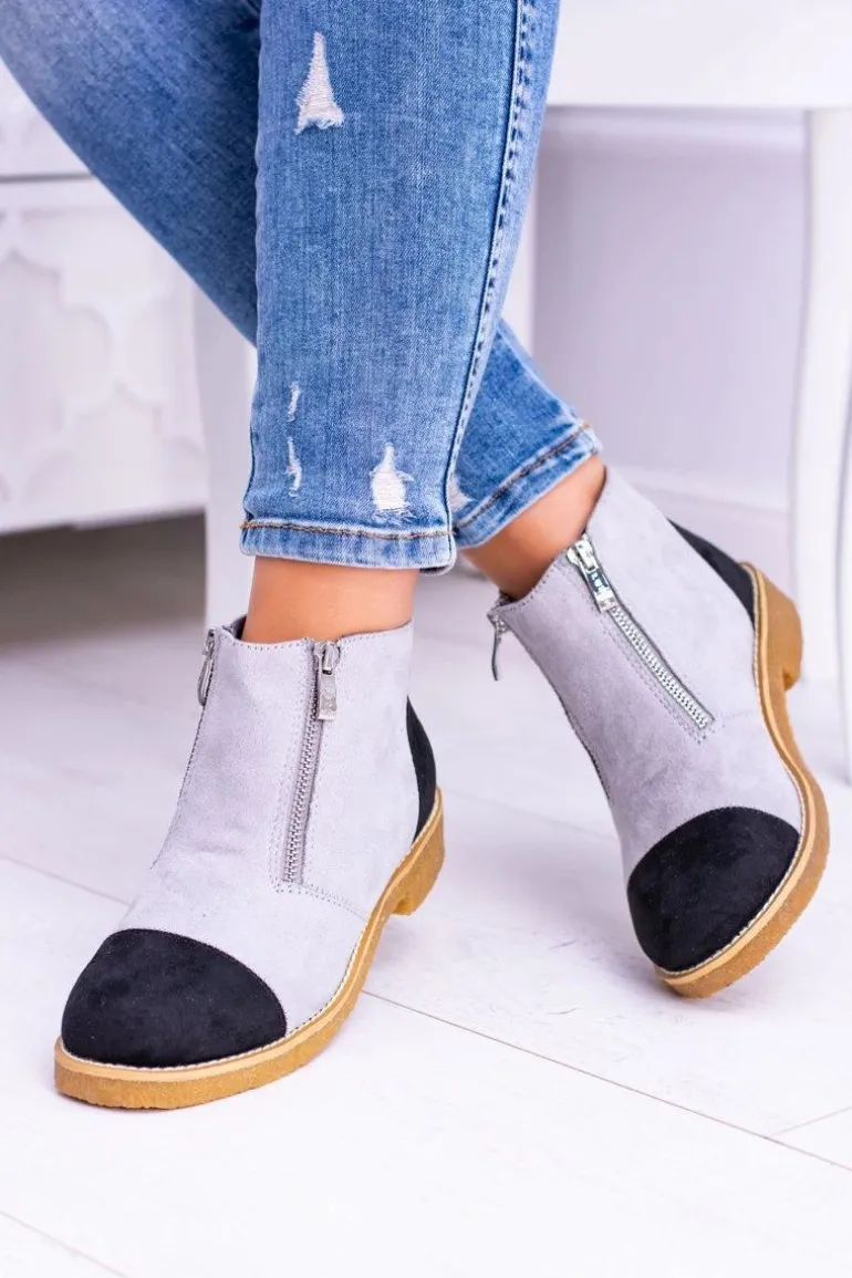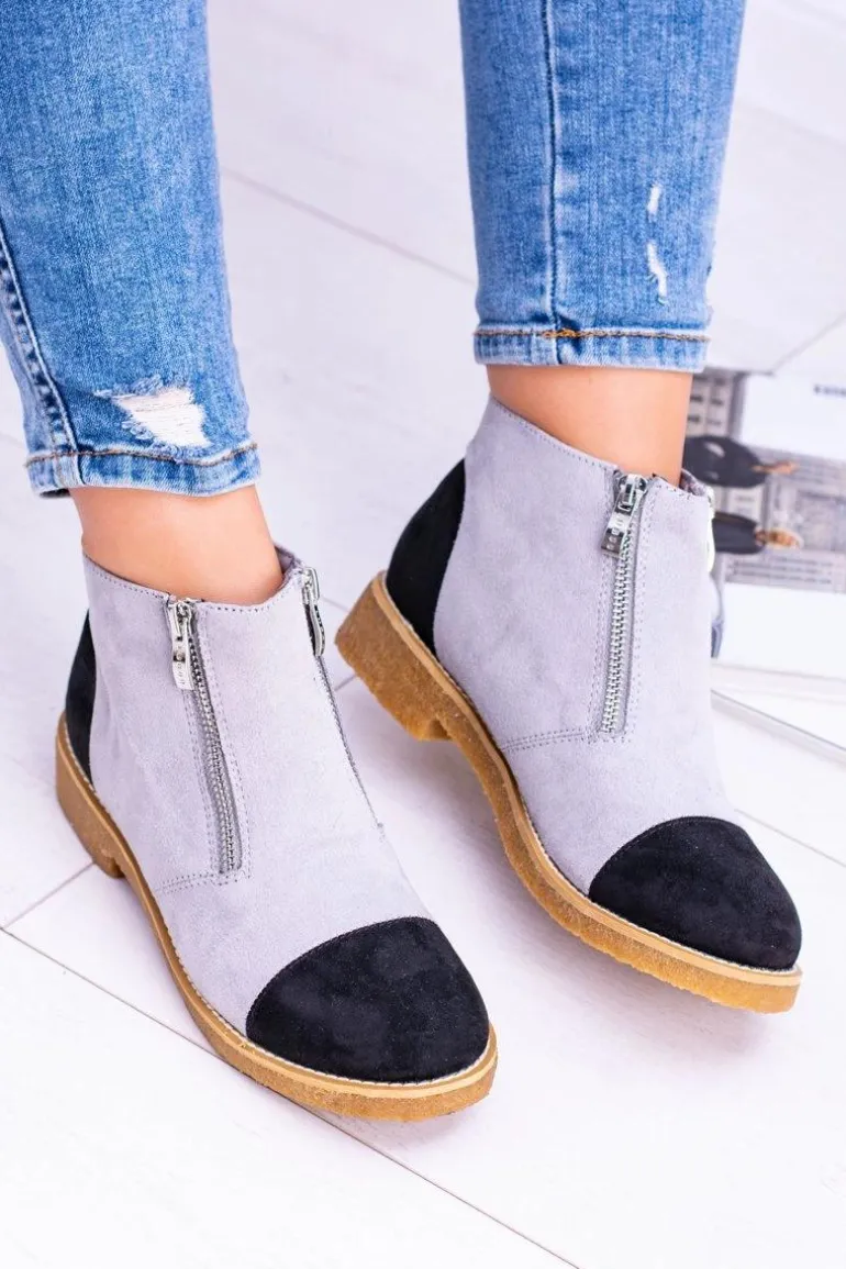 Lu Boo Szare Zamszowe Botki Z Suwakami Inez