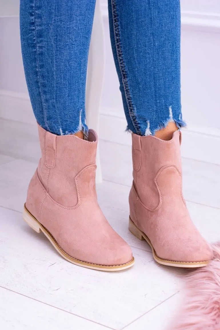 Botki damskie w stylu kowbojskim to połączenie klasyki i nowoczesności. Wykonane z wysokiej jakości zamszu, oferują nie tylko trwałość, ale również stylowy wygląd. Jasnoróżowy kolor dodaje im subtelnego uroku, a niski obcas zapewnia komfort noszenia przez cały dzień. Idealne do codziennych stylizacji, świetnie komponują się zarówno z jeansami, jak i sukienkami, dodając każdej z nich unikalnego charakteru.Przy wyborze rozmiaru prosimy sugerować się tabelą rozmiarów.