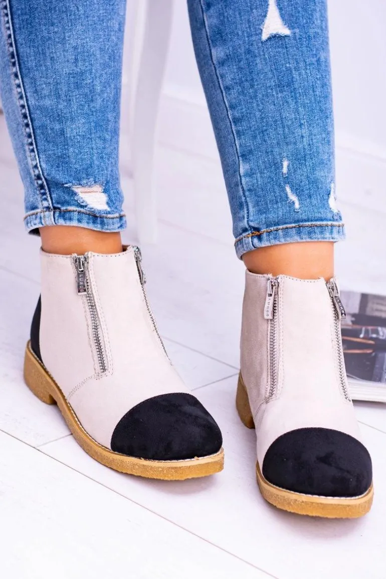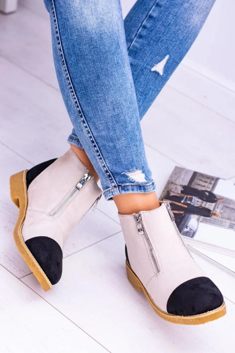Lu Boo Zamszowe Beżowe Botki Z Suwakami Inez