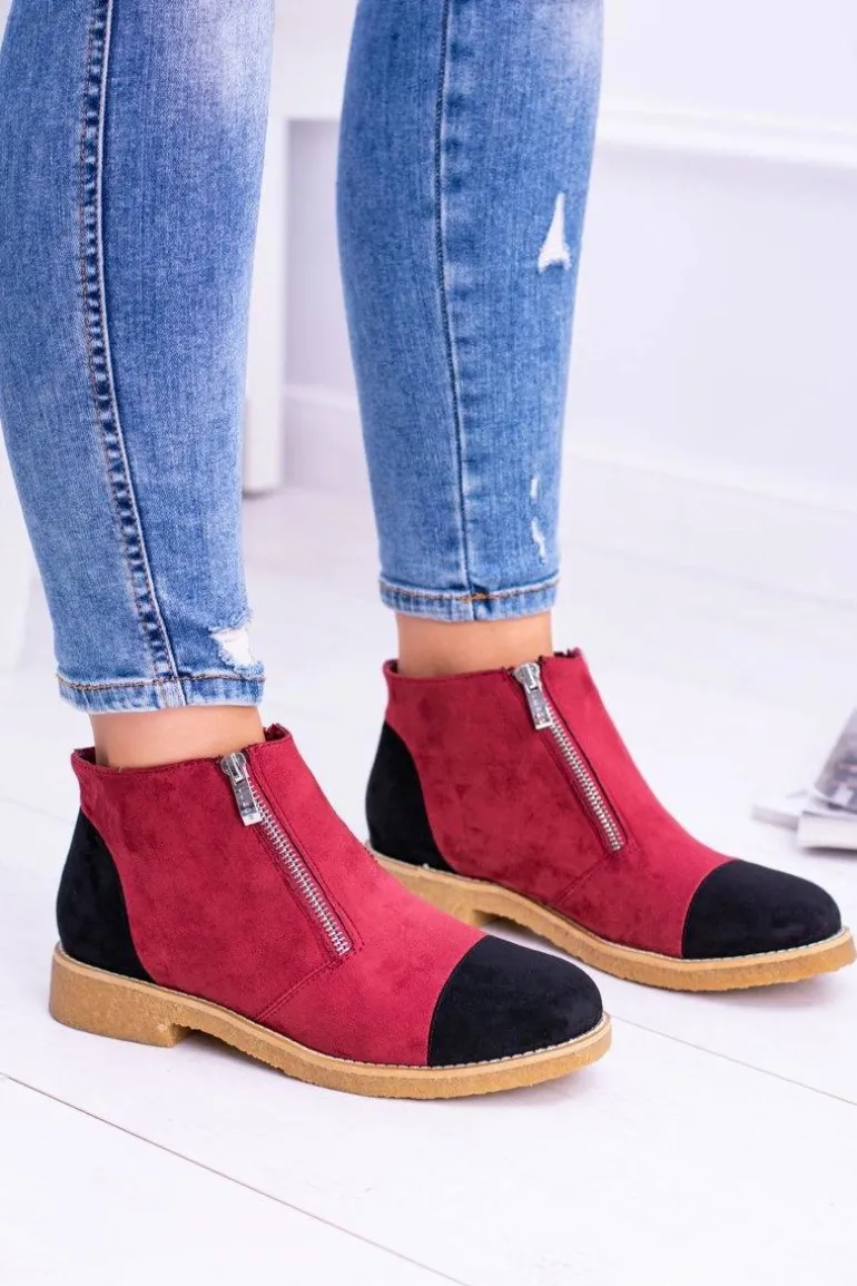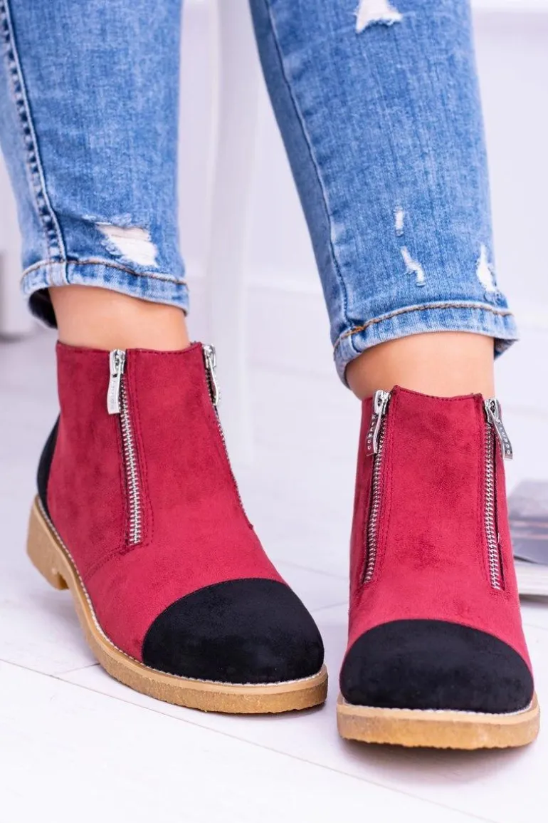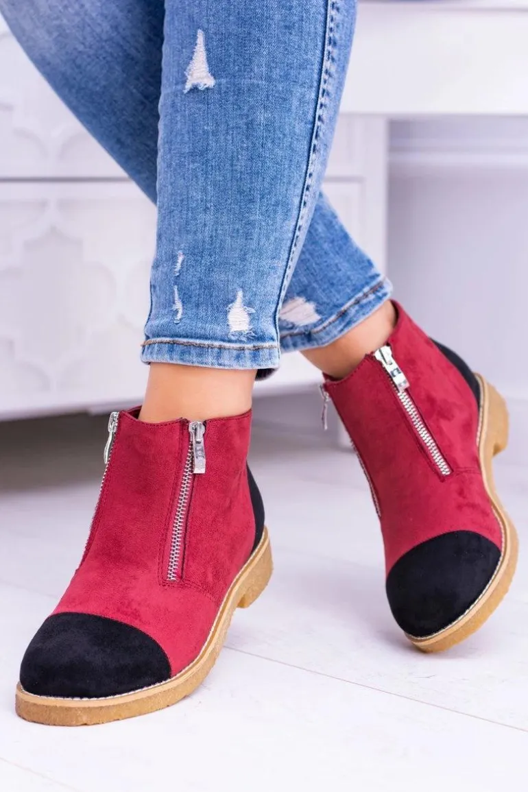 Lu Boo Zamszowe Bordowe Botki Z Suwakami Inez