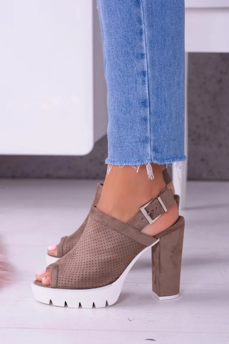 Lu Boo Zamszowe Sandały na Słupku Khaki Emare