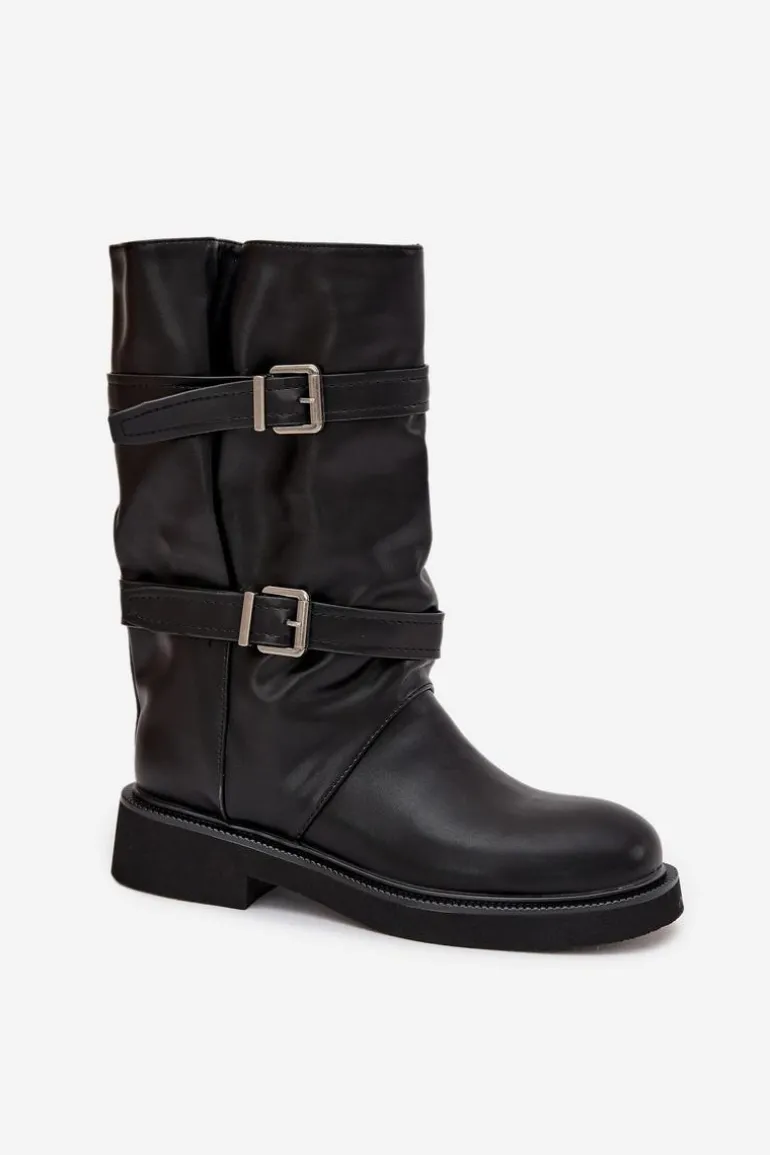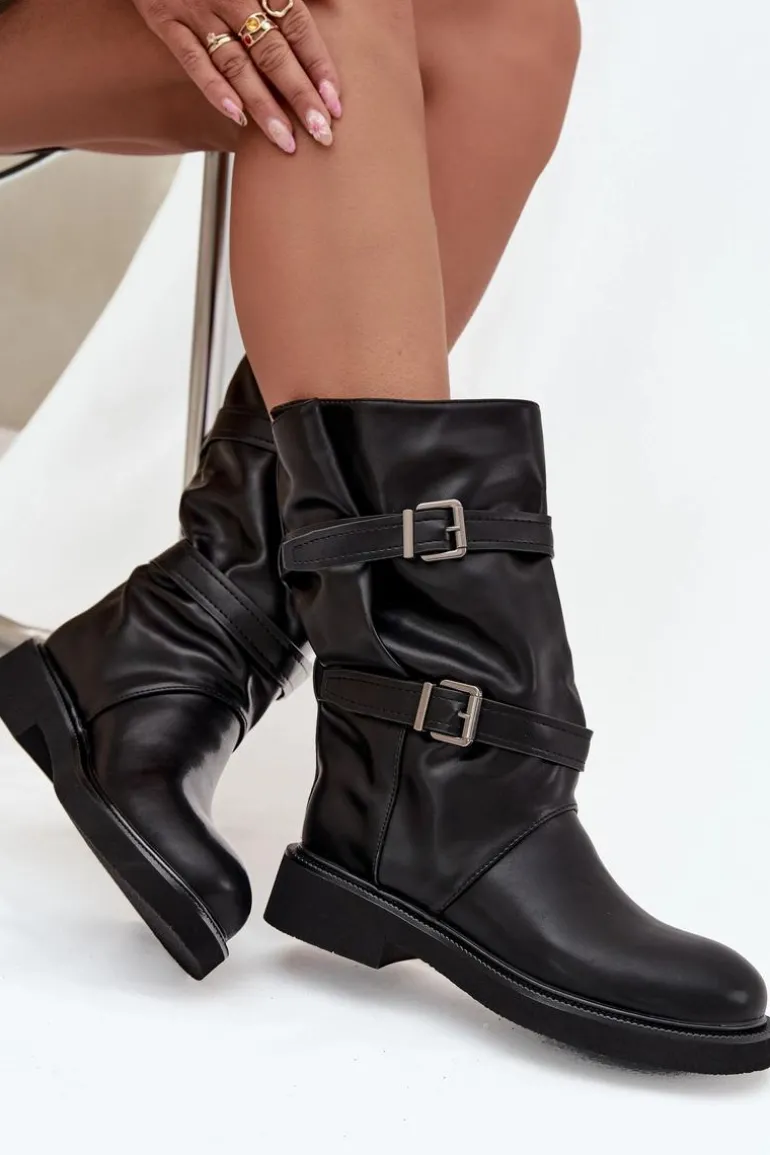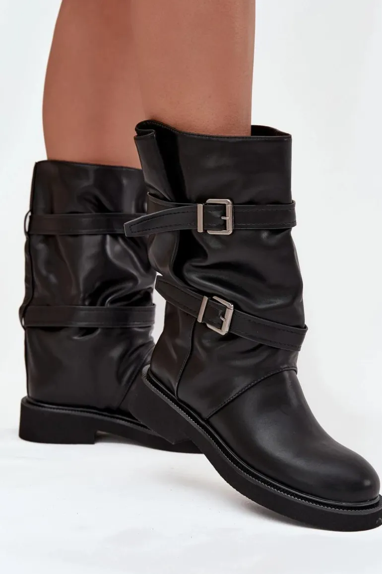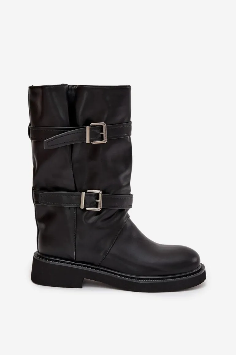 Kozaki damskie z eko skóry to modna i wygodna propozycja na chłodniejsze dni. Wykonane z eko skóry. Osadzone na płaskim obcasie, zapewniają komfort noszenia przez cały dzień, a ich praktyczny, wsuwany fason sprawia, że zakładanie butów jest szybkie i wygodne. Model wyróżnia marszczona cholewka sięgająca do połowy łydki. Całość uzupełniają ozdobne paski z klamrami, wprowadzające modny, nieco rockowy akcent. Te kozaki doskonale sprawdzą się zarówno w codziennych, casualowych zestawach ze spodniami czy legginsami, jak i w połączeniu z sukienką czy spódnicą. Przy wyborze rozmiaru prosimy kierować tabelą rozmiarów.