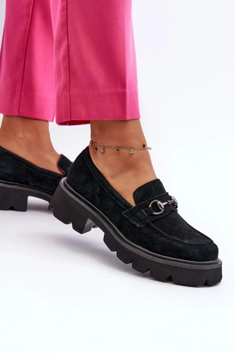 Masywne Mokasyny Damskie Zamszowe Czarne Neloria