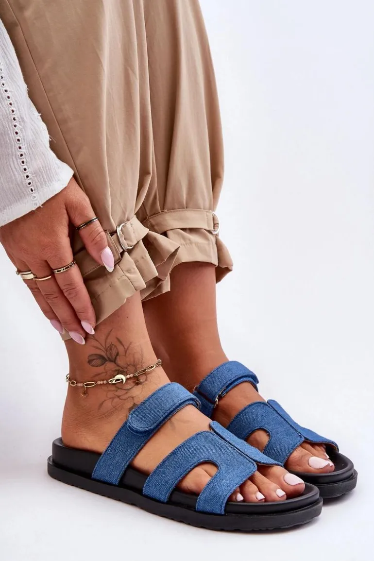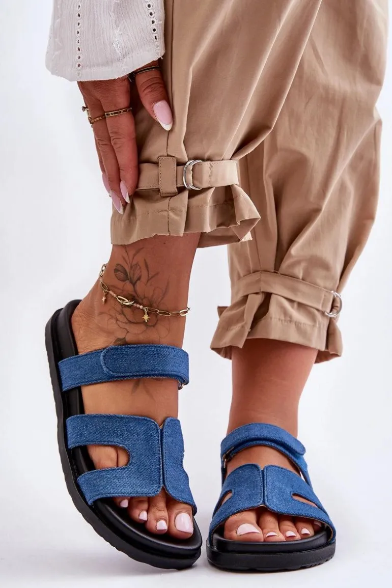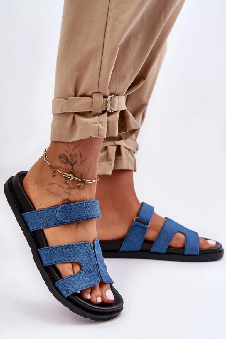Materiałowe Damskie Klapki Na Rzep Ciemnoniebieskie Jose