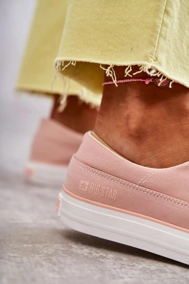 Niskie damskie trampki zostały wykonane z materiału tekstylnego. Buty posiadają okrągły, miękki nosek. Delikatnie usztywniany zapiętek. Model ten posiada sznurowanie pozwalające na odpowiednie dopasowanie obuwia do tęgości nogi. Dodatkowo tenisówki posiadają antypoślizgową, gumową podeszwę. Model ten świetnie sprawdzi się na co dzień do pracy czy szkoły. Przy wyborze rozmiaru prosimy sugerować się tabelą rozmiarów.