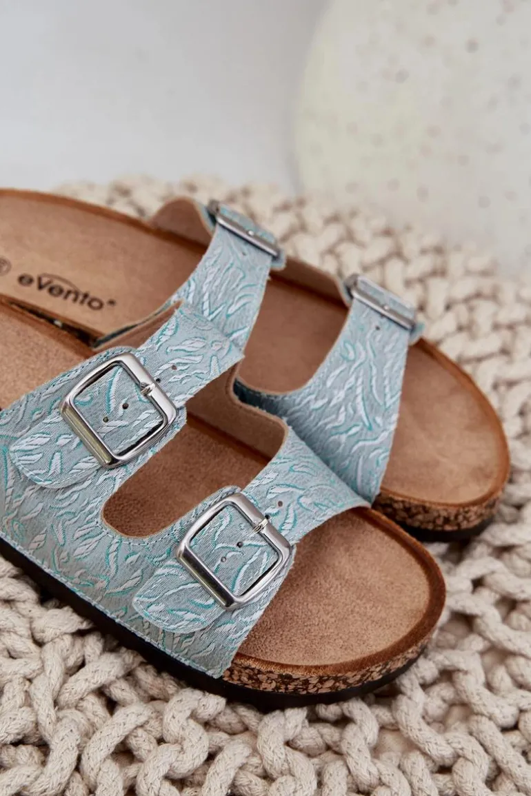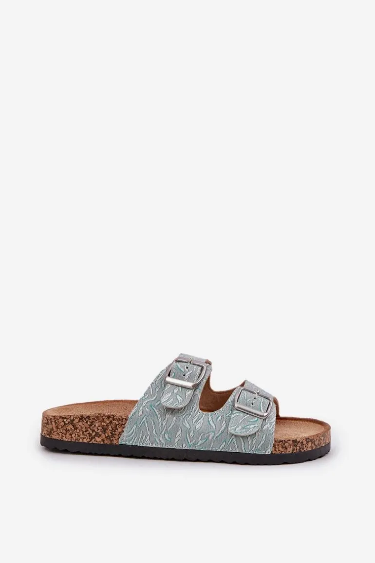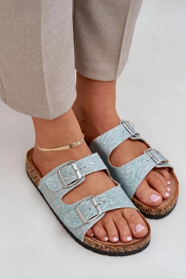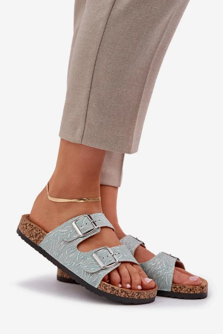 Materiałowe Klapki Na Korkowej Podeszwie Z Klamrami Miętowe Atera