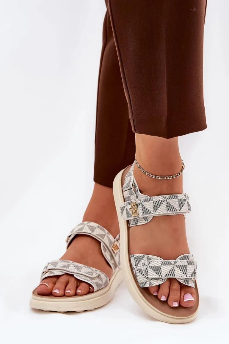 Wygodne sandały damskie wykonane z materiału tekstylnego, które łączą komfort z subtelnym stylem. Zapinane na rzepy, co pozwala na łatwe i szybkie dopasowanie. Mały złoty detal dodaje elegancji i wyjątkowego charakteru. Dzięki miękkiej wkładce zapewniają wygodę na każdym kroku. Idealne na ciepłe dni, doskonale pasują do letnich sukienek, spódnic i spodni. Przy wyborze rozmiaru prosimy sugerować się tabelą rozmiarów.