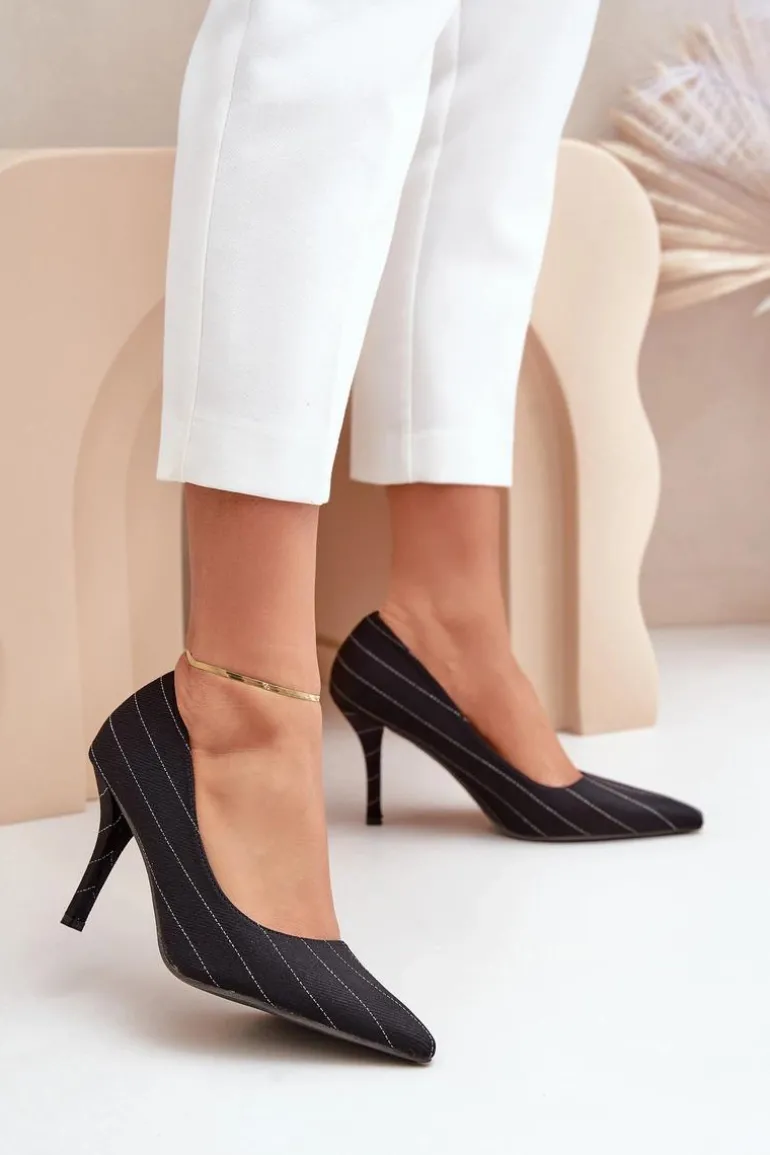 Damskie szpilki wykonane z wysokiej jakości materiału tekstylnego, które doskonale łączą elegancję i wygodę. Model z klasycznym, spiczastym noskiem optycznie wysmukla stopę, a miękka wkładka gwarantuje komfort nawet podczas długiego noszenia. Idealne na specjalne okazje lub dopełnienie stylowych, wieczorowych stylizacji. Przy wyborze rozmiaru prosimy sugerować się tabelą rozmiarów.