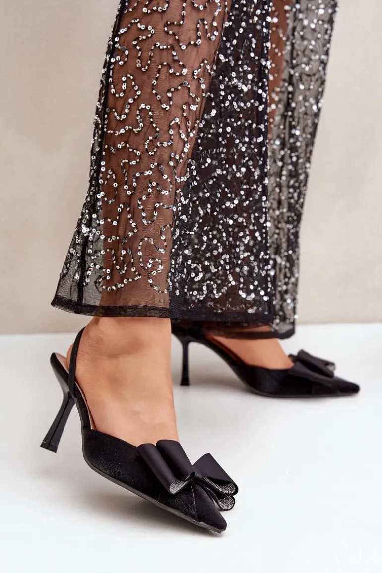 Eleganckie damskie szpilki wykonane z materiału tekstylnego. Przód butów ozdobiony efektowną kokardą, która przyciąga wzrok i nadaje im wyjątkowego charakteru. Szpiczaste noski optycznie wysmuklają nogi, a obcas w formie szpilki podkreśli sylwetkę. Idealny wybór na wieczorowe wyjścia. Te szpilki to połączenie stylu, wygody i ponadczasowej elegancji! Przy wyborze rozmiaru prosimy sugerować się tabelą rozmiarów.