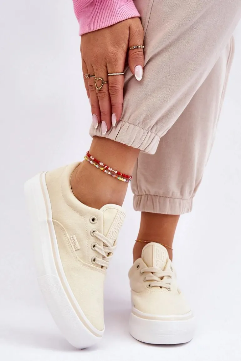 Niskie trampki damskie świetnie sprawdzą się podczas codziennych aktywności. Buty posiadają dodatkowo usztywniany zapiętek. Sznurowanie pozwoli na odpowiednie dopasowanie obuwia. Tenisówki posiadają antypoślizgową, gumową podeszwę. Idealny model na wiosenno-letni sezon! Przy wyborze rozmiaru prosimy sugerować się tabelą rozmiarów.
