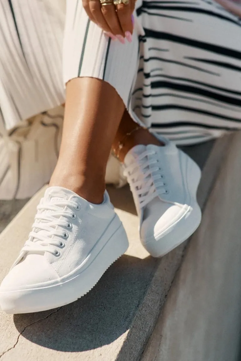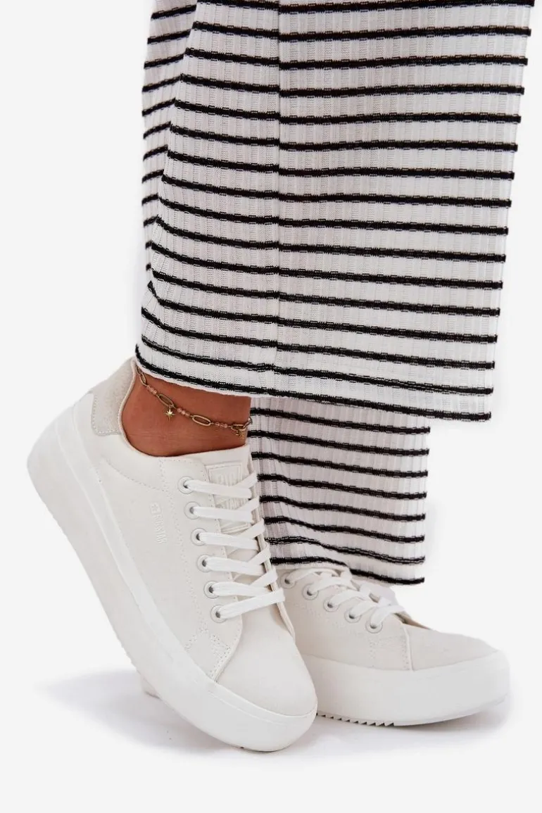 Trampki damskie od marki Big Star, wykonane z wysokiej jakości materiału tekstylnego. Te wszechstronne trampki są doskonałym wyborem na co dzień, łącząc w sobie komfort oraz klasyczny, ponadczasowy design. Osadzone na platformie, która subtelnie unosi sylwetkę. Idealnie komponują się z wieloma casualowymi stylizacjami, gwarantując komfort na każdym kroku.