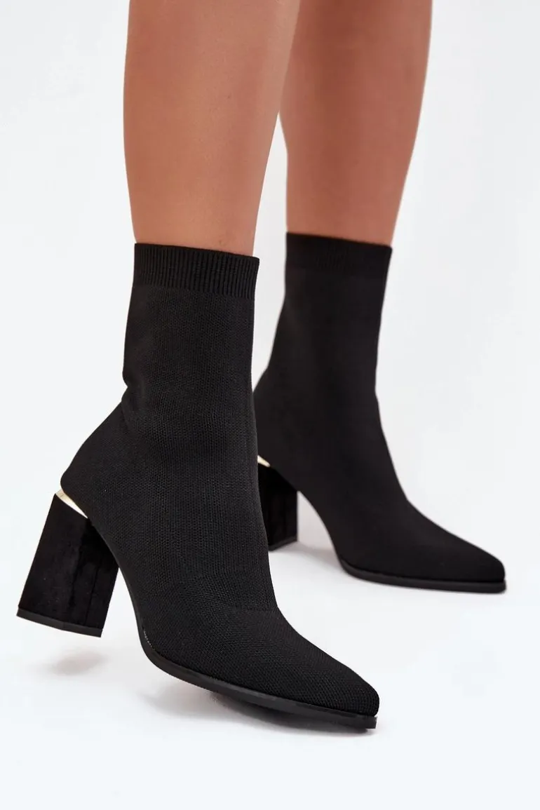 Botki damskie wykonane z materiału tekstylnego to doskonała propozycja na chłodniejsze dni. Osadzone na obcasie typu słupek, z subtelnym złotym elementem, który dodaje eleganckiego charakteru. Szpiczaste noski nadają im szyku, a ocieplenie tylko na wysokości stopy zapewnia komfort w zimniejsze dni. Doskonałe jesiennych stylizacji. Przy wyborze rozmiaru prosimy sugerować się tabelą rozmiarów.