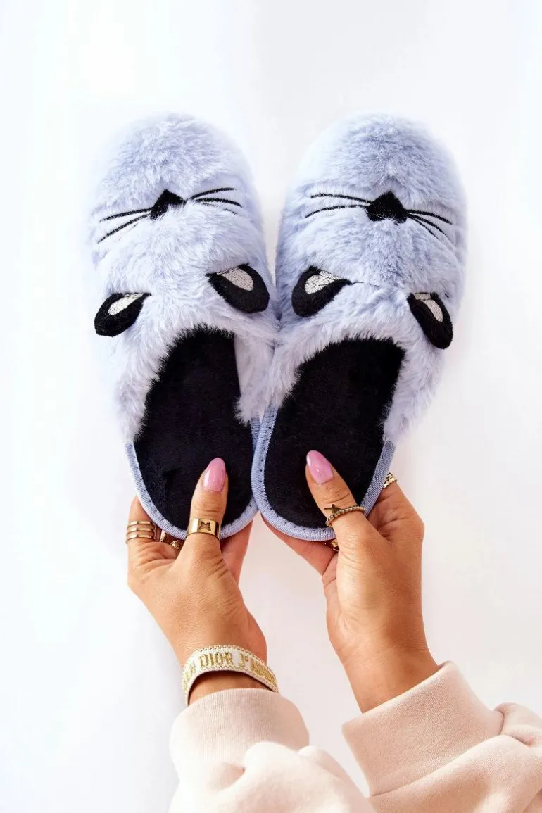 Miękkie Papcie Kotki Z Uszami Niebieskie Distty