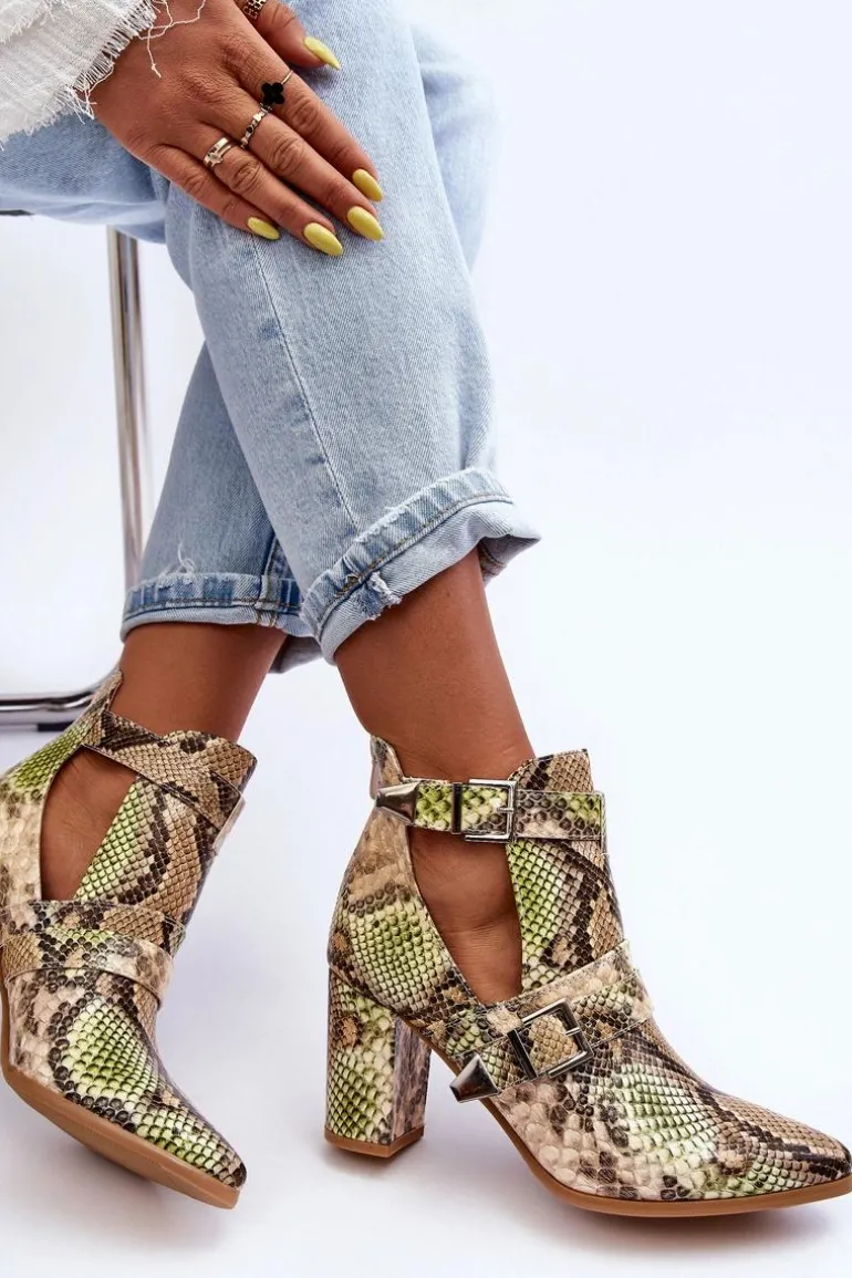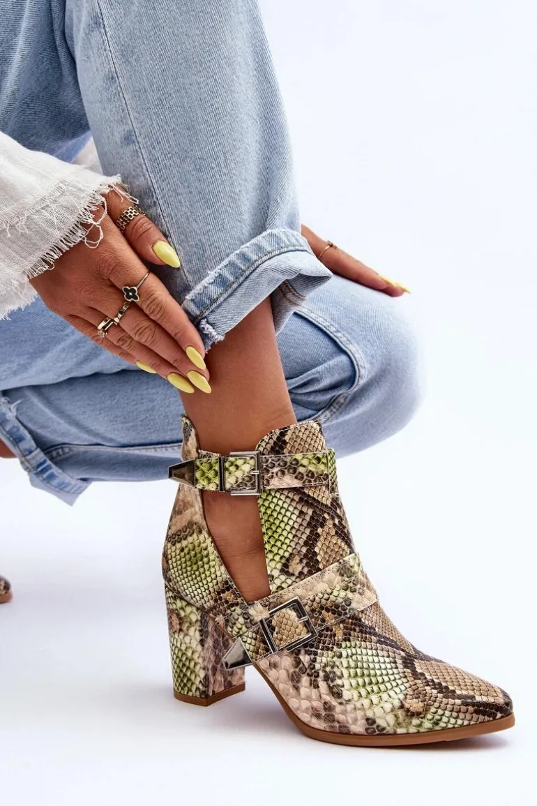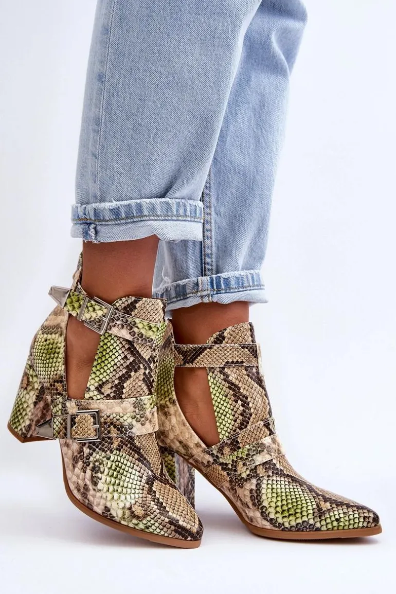 Niezwykłe botki posiadają z boku wycięcia oraz klamry. Z tyłu cholewki znajduje się suwak. Botki zostały wykonane z eko skóry. Osadzone na obcasie w postaci słupka. Nosek w szpic optycznie wysmukli stopę. Wkładka wykonana z tkaniny zapewni wygodę podczas użytkowania. Koniecznie powinnaś sprawdzić pozostałe modele botek! Podczas wyboru rozmiaru prosimy kierować się tabelą rozmiarów.