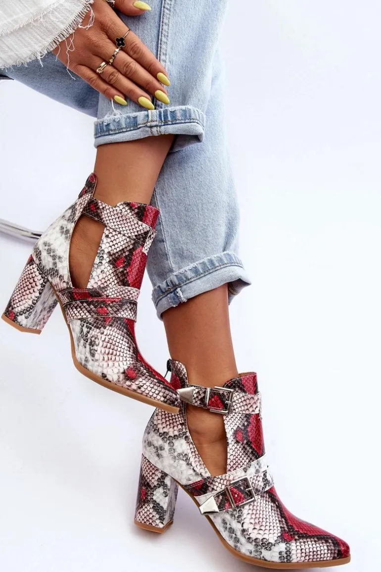Niezwykłe botki posiadają z boku wycięcia oraz klamry. Z tyłu cholewki znajduje się suwak. Botki zostały wykonane z eko skóry. Osadzone na obcasie w postaci słupka. Nosek w szpic optycznie wysmukli stopę. Wkładka wykonana z tkaniny zapewni wygodę podczas użytkowania. Koniecznie powinnaś sprawdzić pozostałe modele botek! Podczas wyboru rozmiaru prosimy kierować się tabelą rozmiarów.