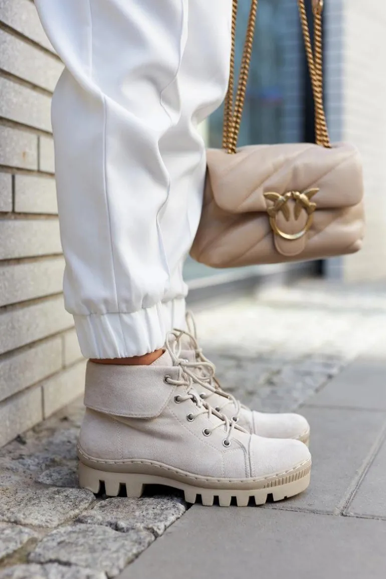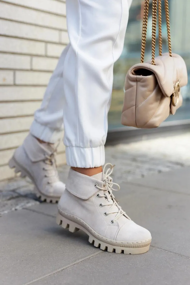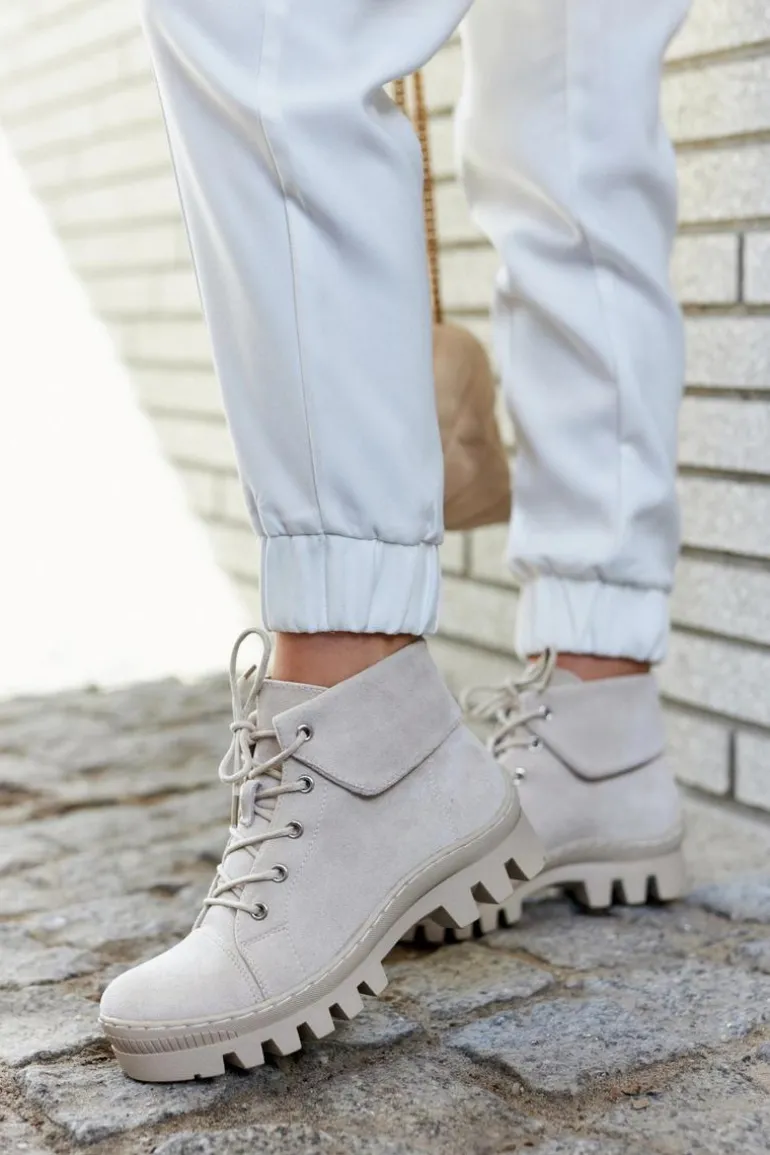 Modne botki trapery zamszowe w kolorze jasnoszarym Dalles