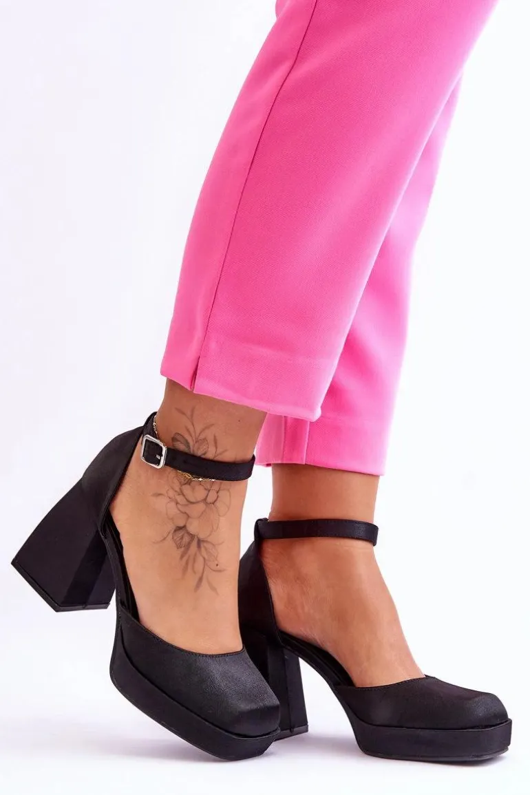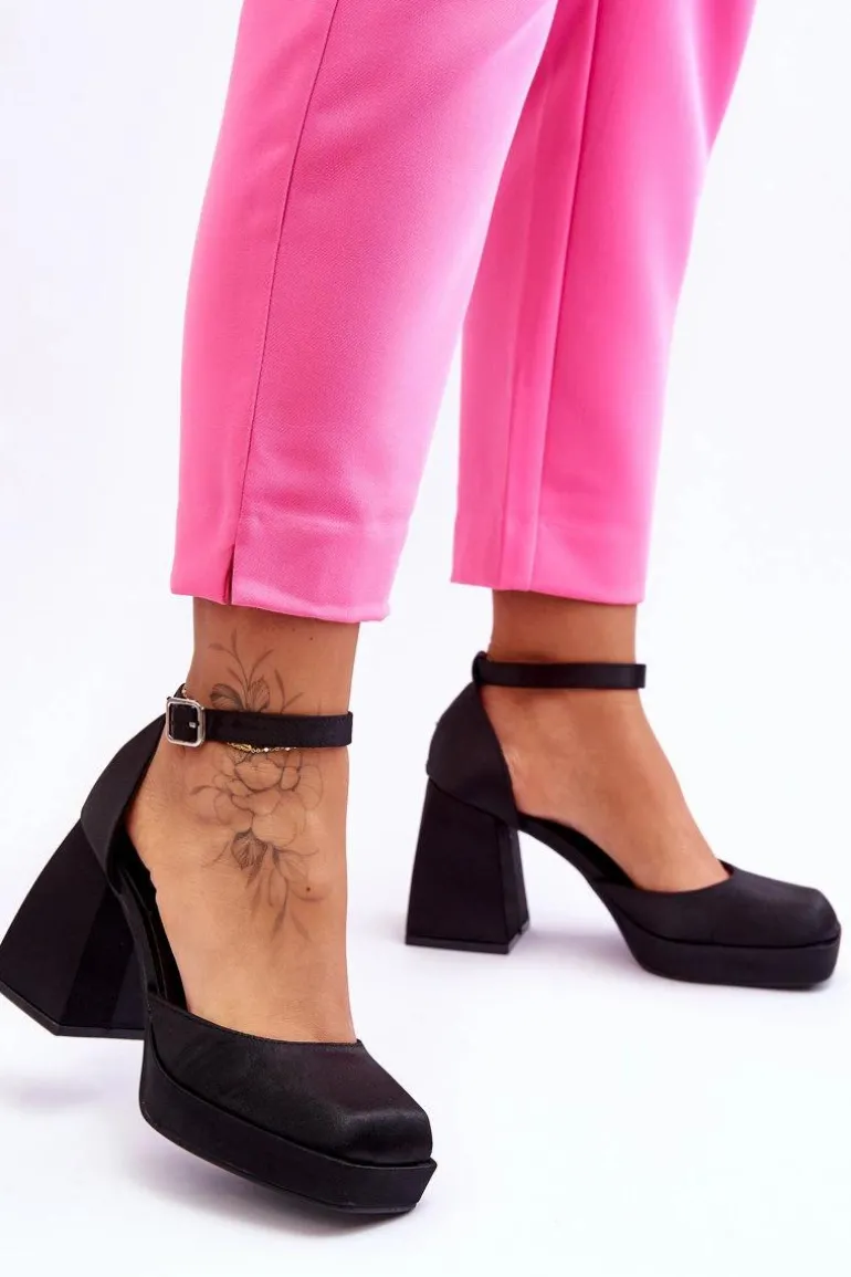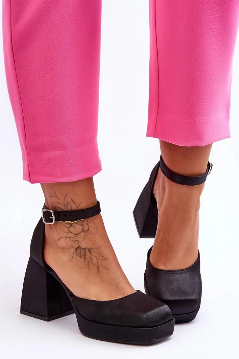 Te modne czółenka zostały osadzone na platformie oraz obcasie w postaci stabilnego, masywnego klocka. Zostały wykonane z materiału tekstylnego. Miękka wkładka z eko skóry zapewni komfortowe użytkowanie. Charakterystyczny, kwadratowy nosek wyróżnia ten model. Zapinane na regulowany pasek ze sprzączką. Przy wyborze rozmiaru prosimy sugerować się tabelą rozmiarów.