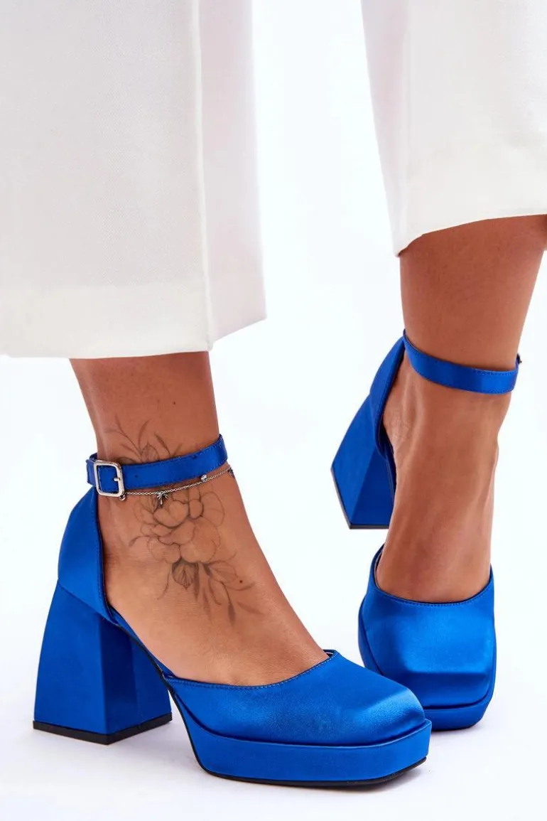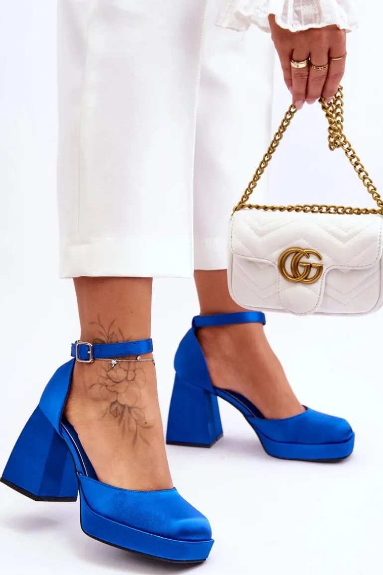 Modne Czółenka Na Masywnym Obcasie Niebieskie Sandia