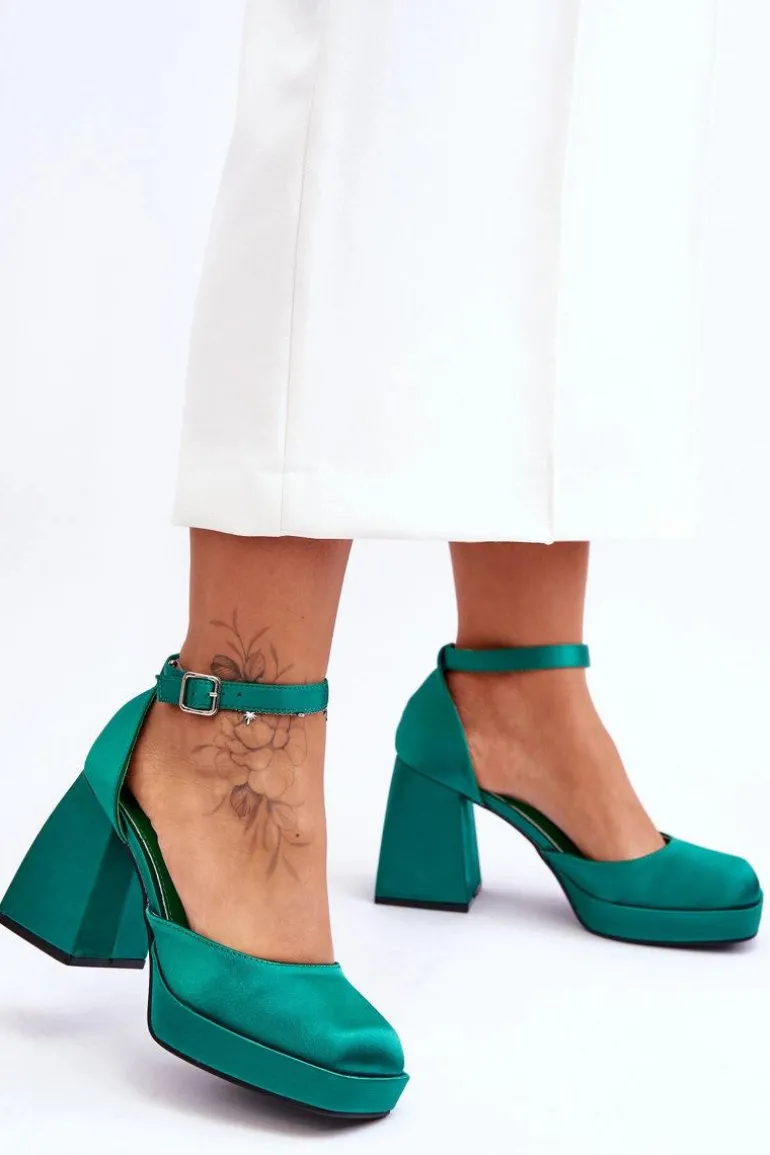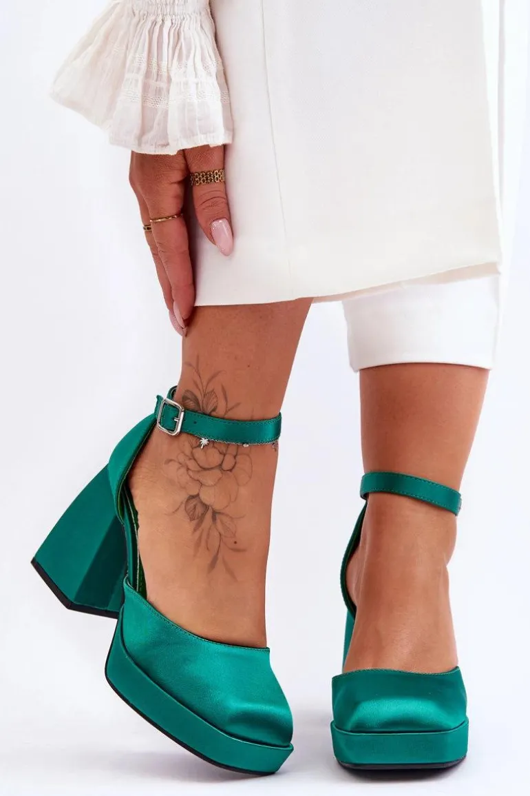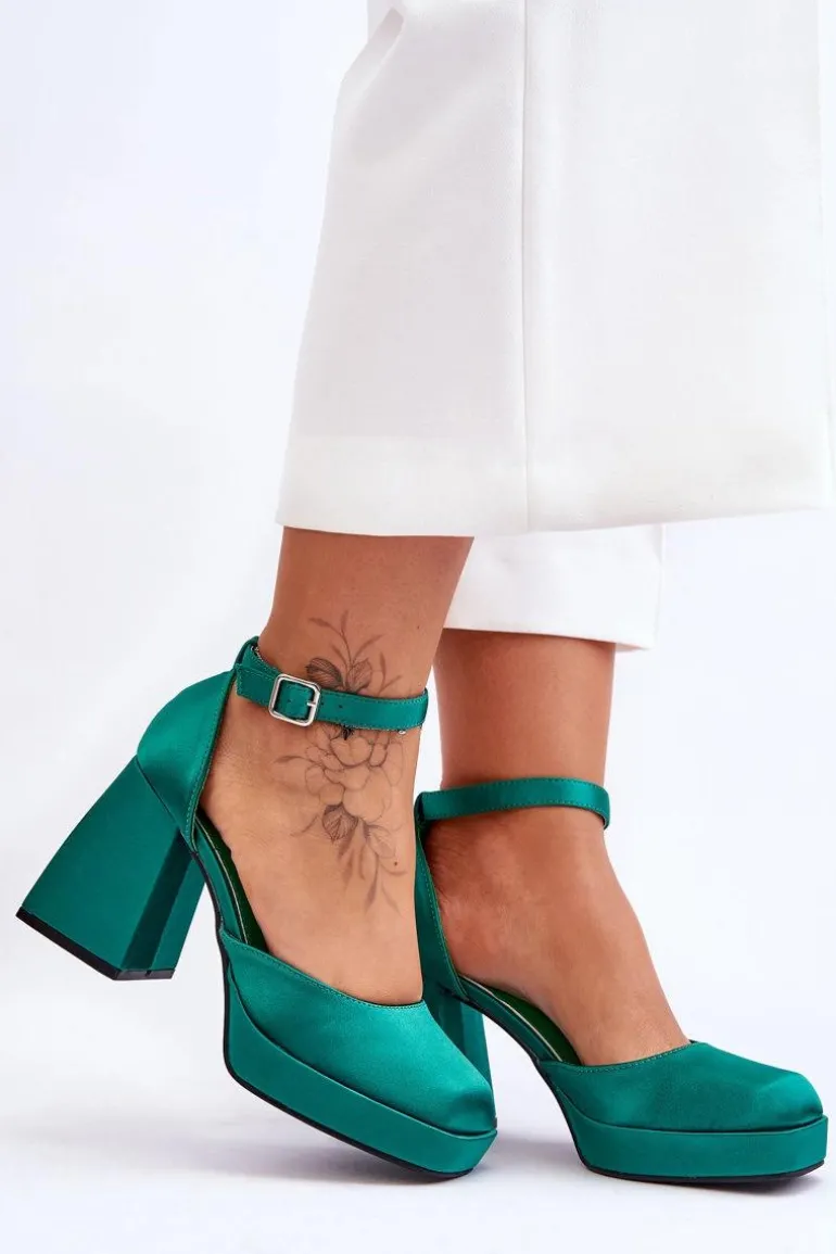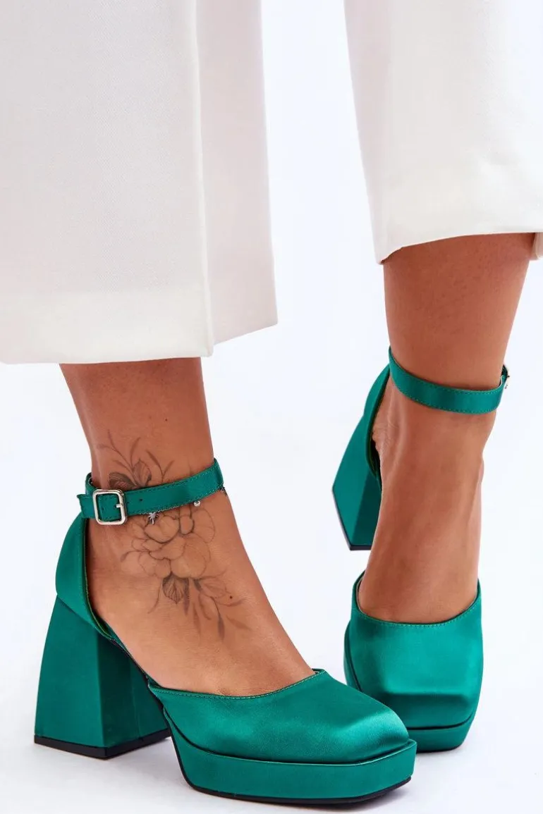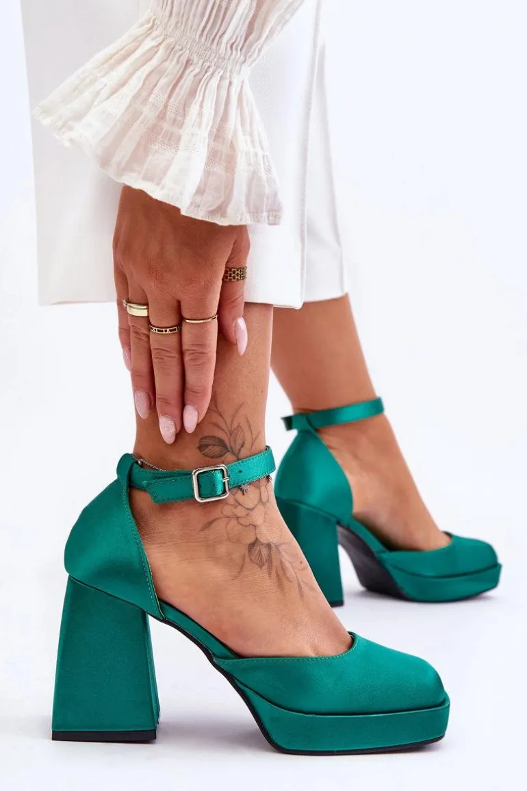 Te modne czółenka zostały osadzone na platformie oraz obcasie w postaci stabilnego, masywnego klocka. Zostały wykonane z materiału tekstylnego. Miękka wkładka z eko skóry zapewni komfortowe użytkowanie. Charakterystyczny, kwadratowy nosek wyróżnia ten model. Zapinane na regulowany pasek ze sprzączką. Przy wyborze rozmiaru prosimy sugerować się tabelą rozmiarów.