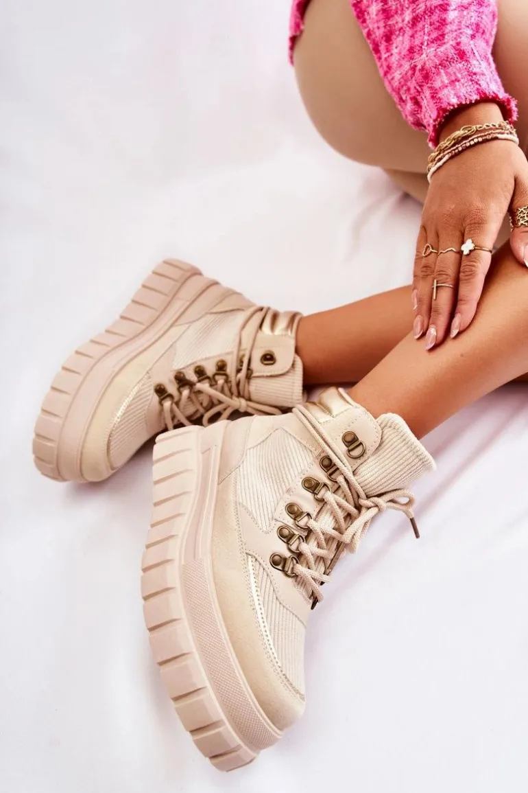 Modne Damskie Botki Na Platformie Beżowe Magnific