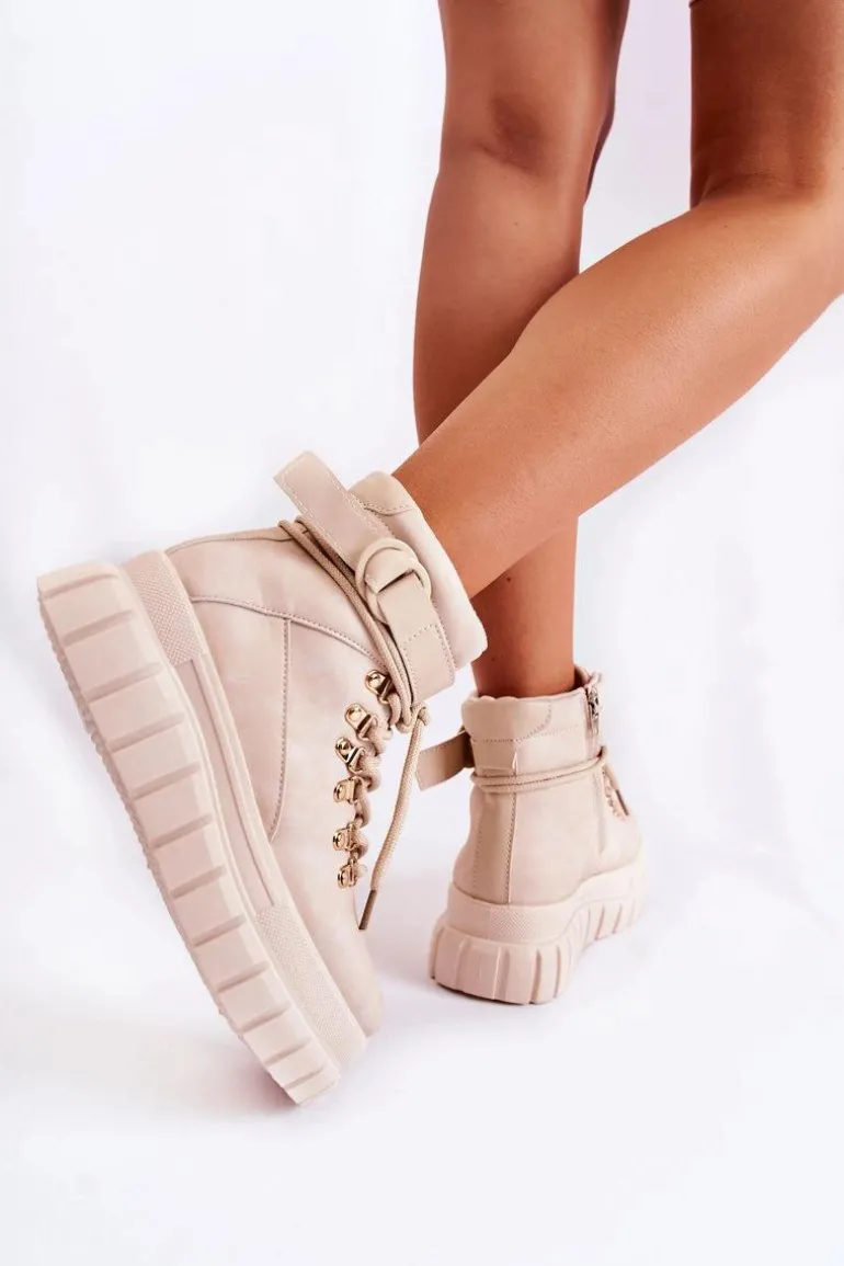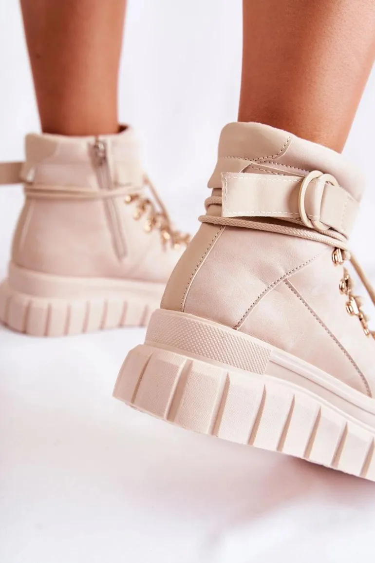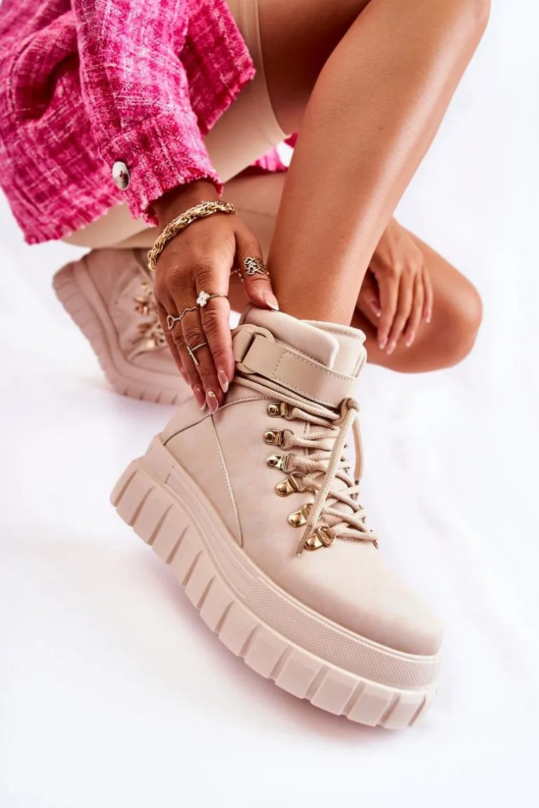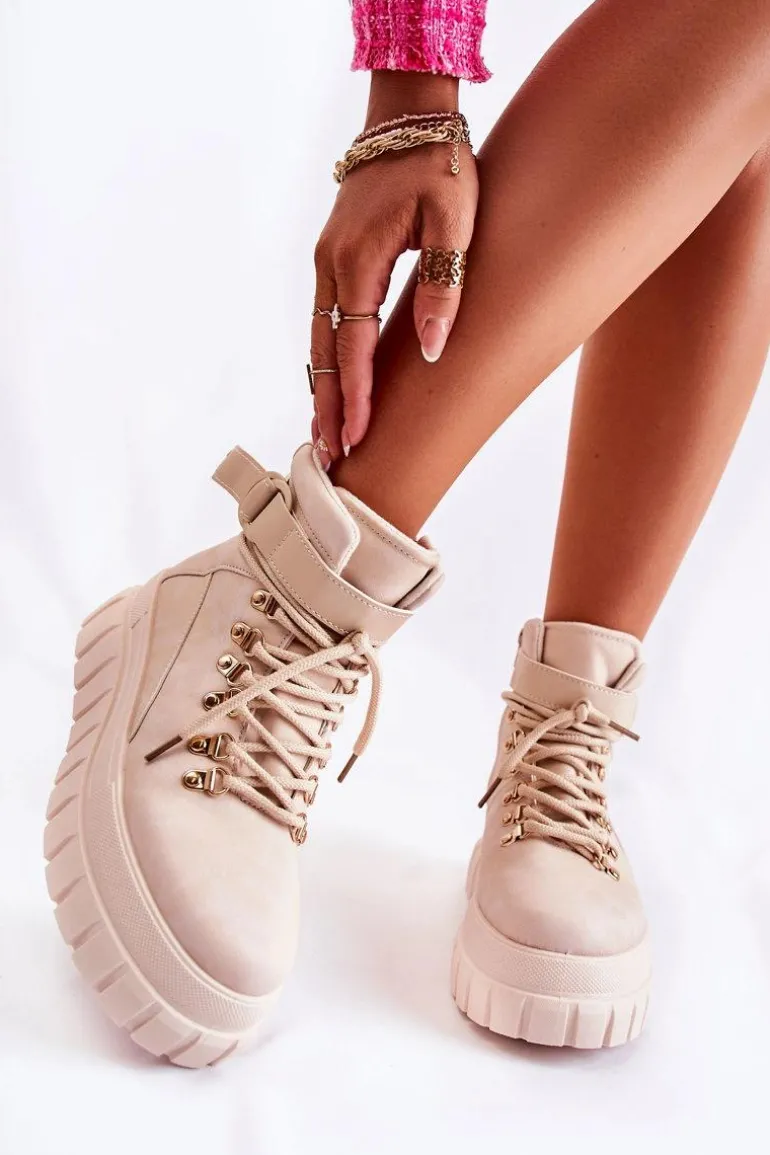 Modne Damskie Botki Na Platformie Z Paskiem Jasnobeżowe La Blanca