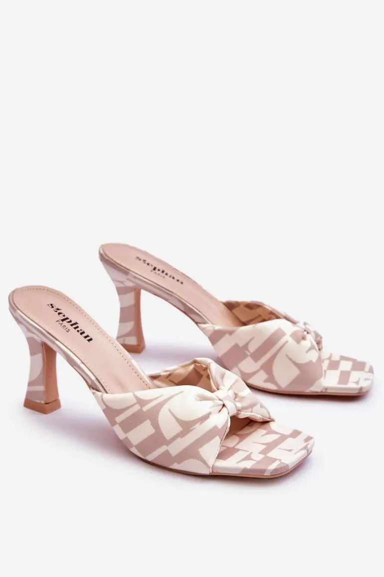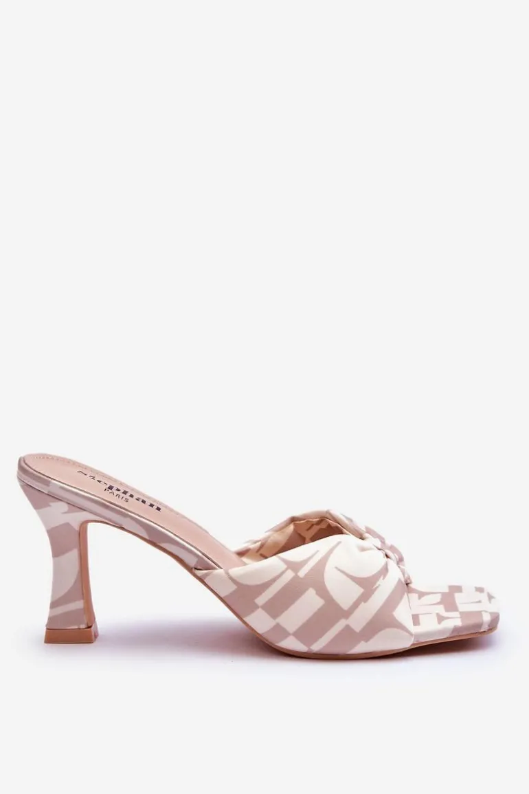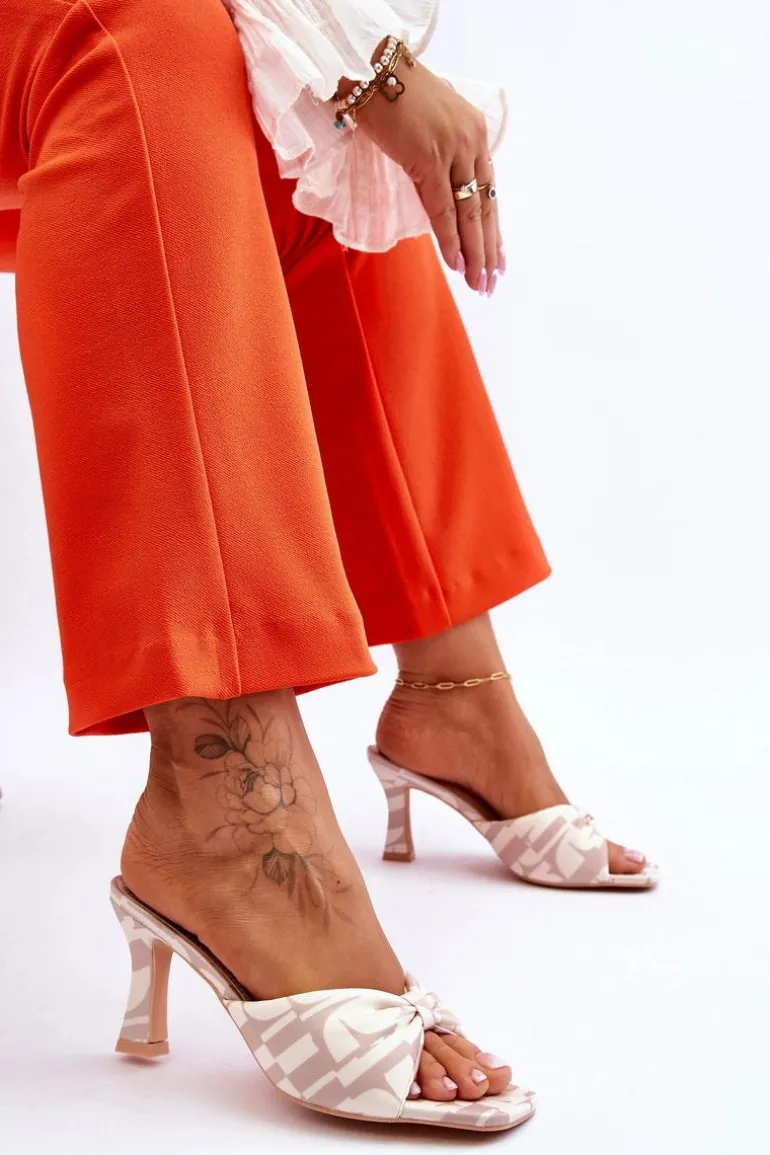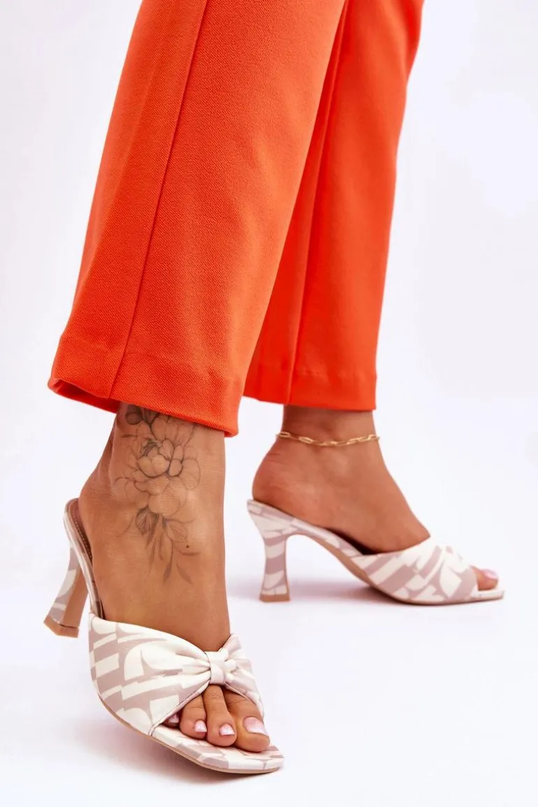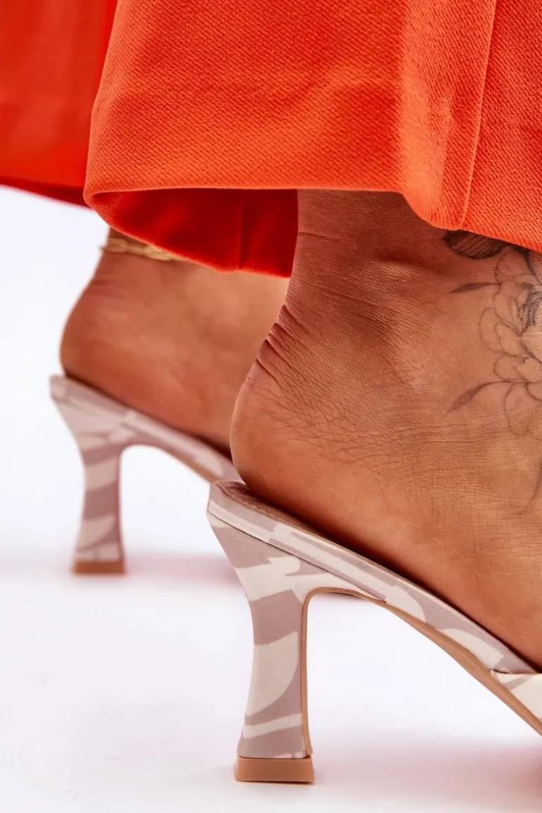 Modne Klapki Na Obcasie W Print Beżowe Floria