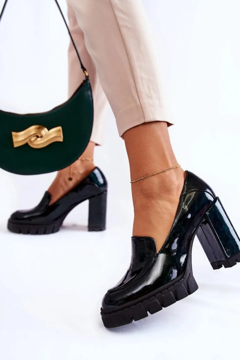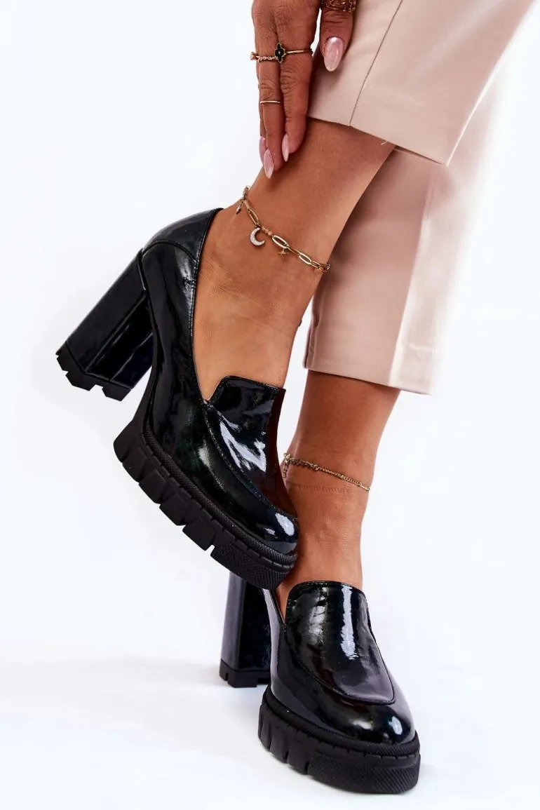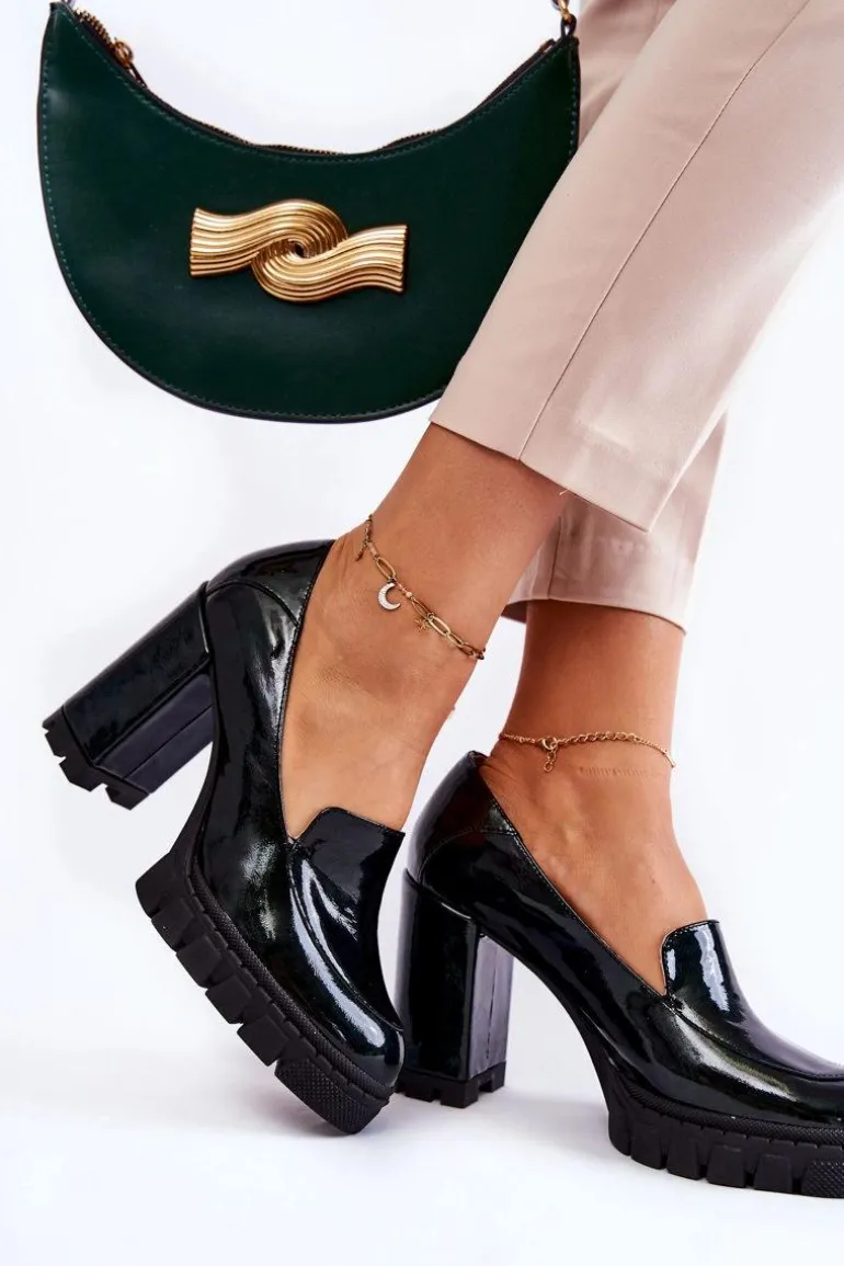 Czółenka na masywnym obcasie w postaci słupka oraz platformie. Osadzone na podeszwie ze żłobieniami, co sprawia, że buty są stabilne podczas użytkowania. Wykonane w całości z naturalnej skóry. Wkładka jest bardzo wygodna, posiada delikatną perforację. Modny fason zachwyci niejedną miłośniczkę wysokich obcasów! Zapiętek jest usztywniany. Koniecznie powinnaś mieć ten model w swojej kolekcji obuwia! Przy wyborze rozmiaru prosimy sugerować się tabelą rozmiarów.