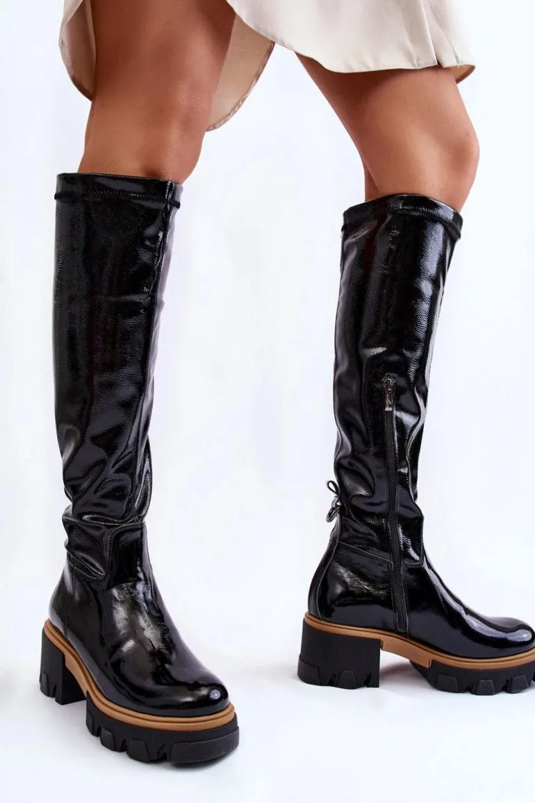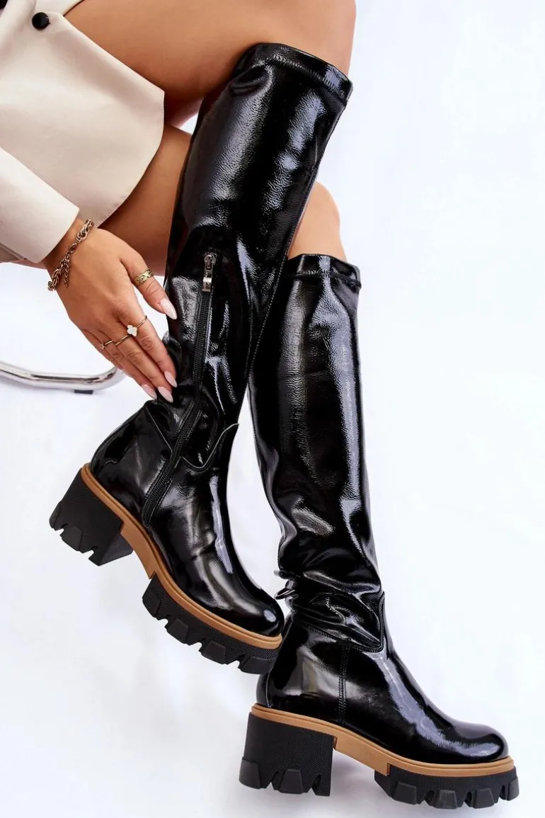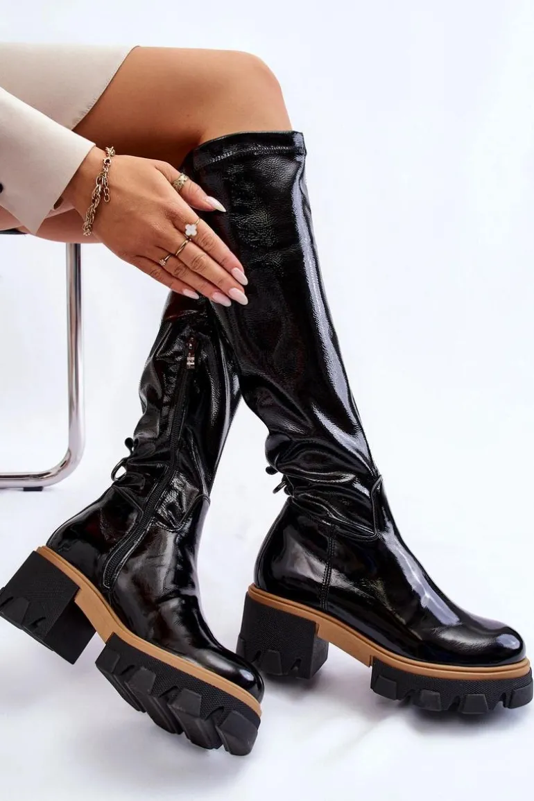 Wyjątkowe kozaki zostały wykonane z wysokiej jakości naturalnej skóry. Model wsuwany, z suwakiem na boku. Kozaki osadzono na masywnym obcasie i platformie ze żłobieniami. Zapiętek jest usztywniany. W środku zostały ocieplone na wysokości stopy kocem obuwniczym, a na pozostałej wysokości materiałem. Przy wyborze rozmiaru prosimy kierować tabelą rozmiarów.