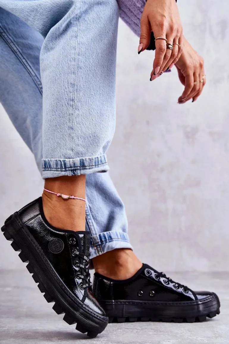 Rewelacyjne trampki od marki Big Star! Nowoczesny design oraz podeszwa z wysokim bieżnikiem wyróżnia ten model spośród innych! Z boku cholewki znajduje się gumowy emblemat. Trampki te dodatkowo posiadają logowane sznurowadła. Podeszwa antypoślizgowa zapewni stabilność. Model ten posiada także usztywniany zapiętek. Koniecznie powinnaś je mieć w swojej garderobie! Przy wyborze rozmiaru prosimy sugerować się tabelą rozmiarów.