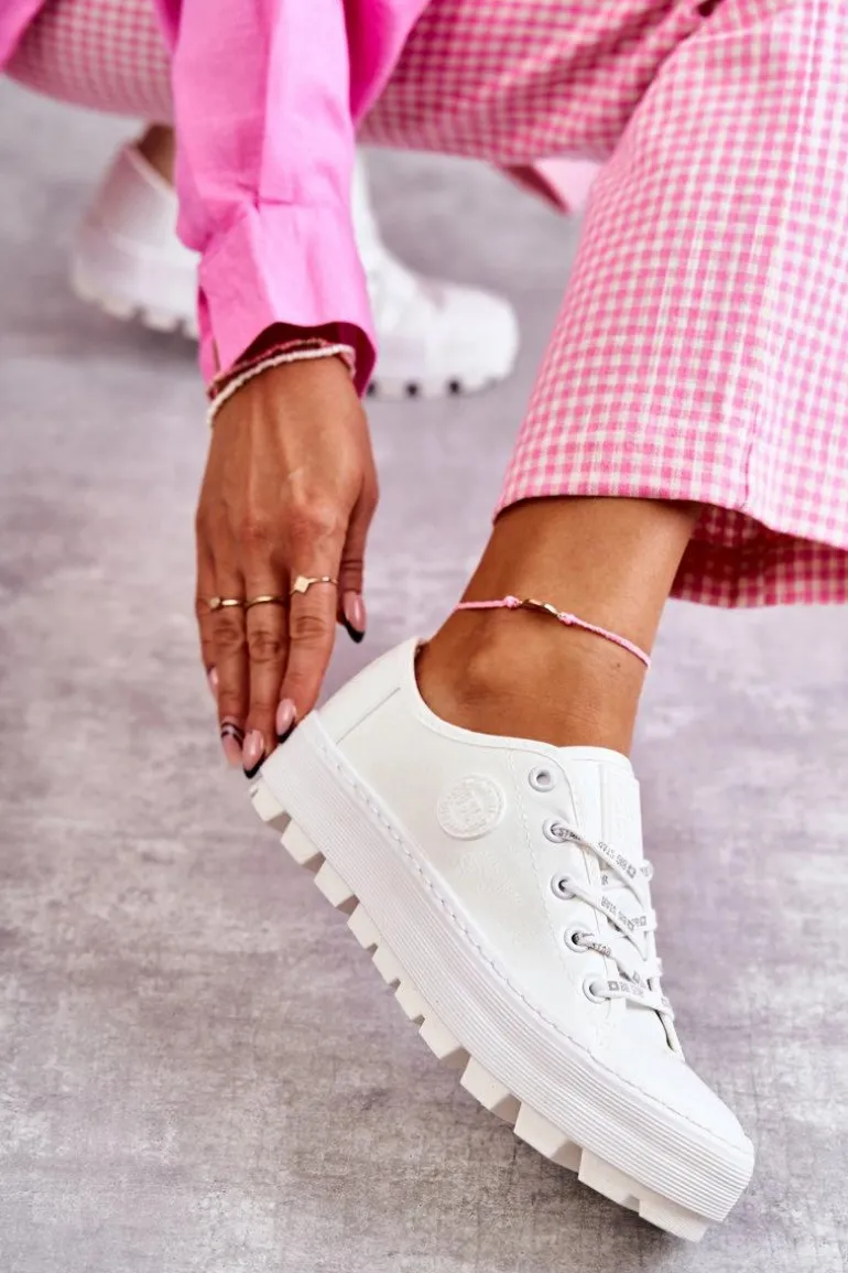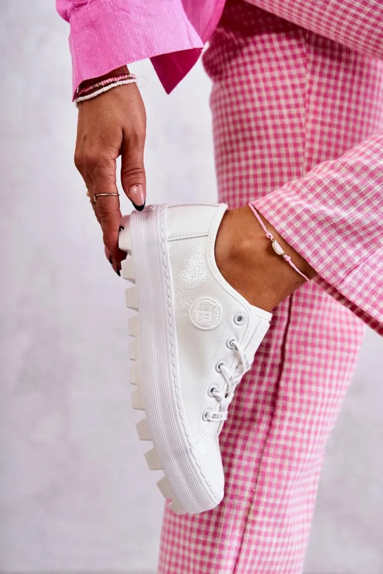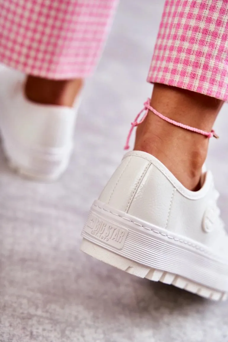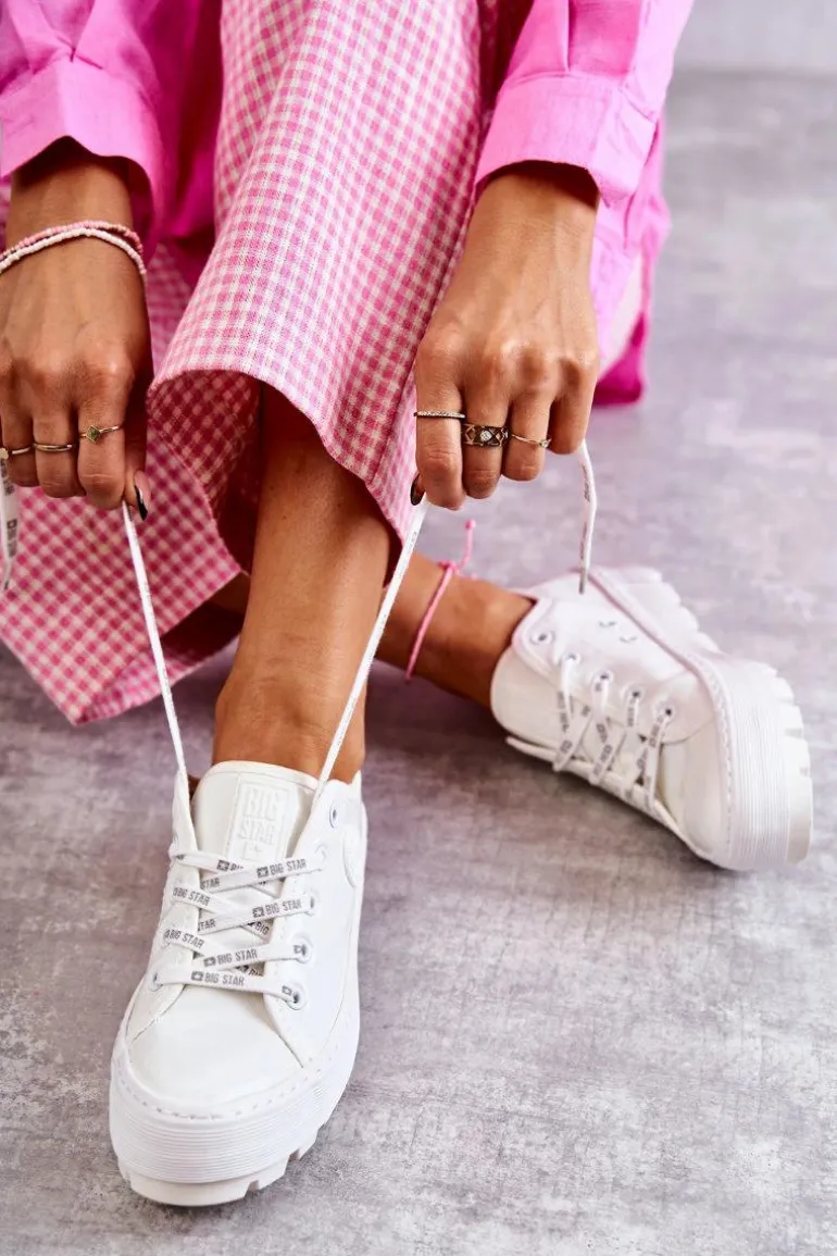Rewelacyjne trampki od marki Big Star! Nowoczesny design oraz podeszwa z wysokim bieżnikiem wyróżnia ten model spośród innych! Z boku cholewki znajduje się gumowy emblemat. Trampki te dodatkowo posiadają logowane sznurowadła. Podeszwa antypoślizgowa zapewni stabilność. Model ten posiada także usztywniany zapiętek. Koniecznie powinnaś je mieć w swojej garderobie! Przy wyborze rozmiaru prosimy sugerować się tabelą rozmiarów.