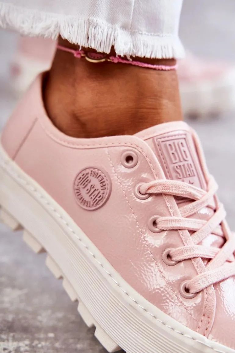 Rewelacyjne trampki od marki Big Star! Nowoczesny design oraz podeszwa z wysokim bieżnikiem wyróżnia ten model spośród innych! Z boku cholewki znajduje się gumowy emblemat. Trampki te dodatkowo posiadają logowane sznurowadła. Podeszwa antypoślizgowa zapewni stabilność. Model ten posiada także usztywniany zapiętek. Koniecznie powinnaś je mieć w swojej garderobie! Przy wyborze rozmiaru prosimy sugerować się tabelą rozmiarów.