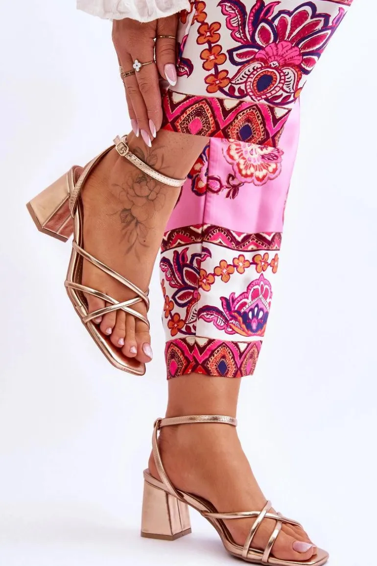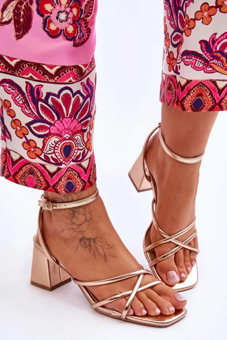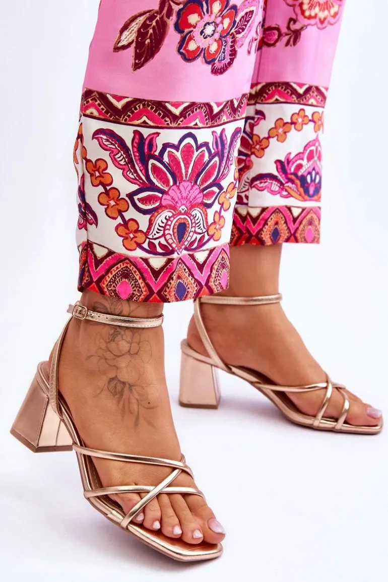 Modne Sandałki Na Obcasie Różowe Złoto Felisa