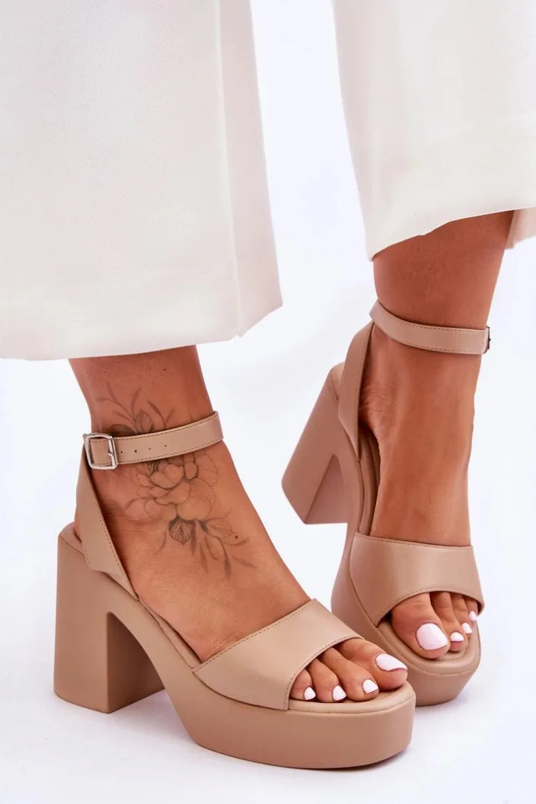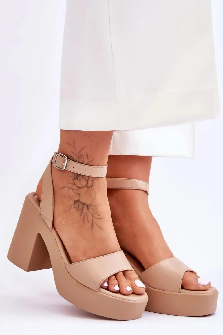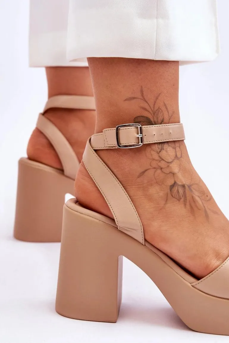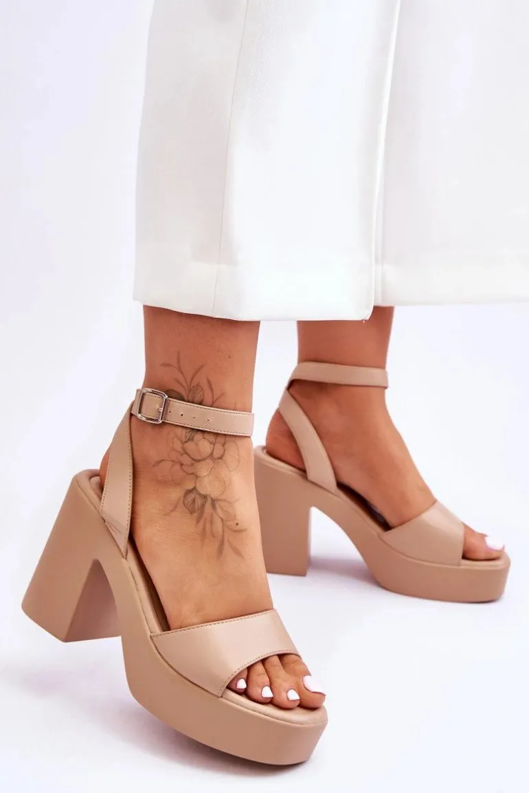 Modne Sandały Na Masywnym Obcasie Beżowe Karmine