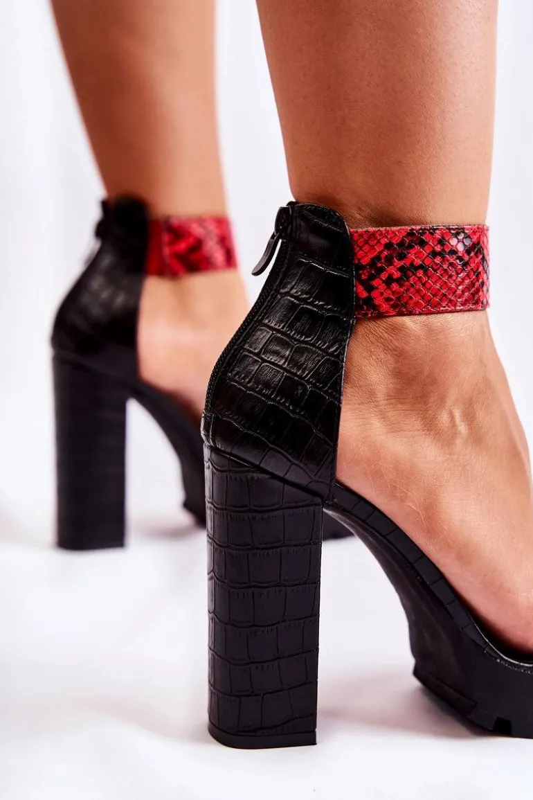 Modne sandały powinny znaleźć się w szafie każdej kobiety! Zostały wykonane z eko skóry w modny wzór. Osadzone na masywnym, wysokim słupku oraz platformie. Buty świetnie wyeksponują Twoje nogi. O komfort zadba eko skórzana wkładka, która jest bardzo wygodna podczas użytkowania. Model zapinany na suwak z tyłu cholewki. Nosek odkryty i okrągły. Eleganckie sandałki będą pasować do wielu stylizacji. Zapiętek z dodatkowym usztywnianiem.Przy wyborze rozmiaru prosimy sugerować się tabelą rozmiarów.
