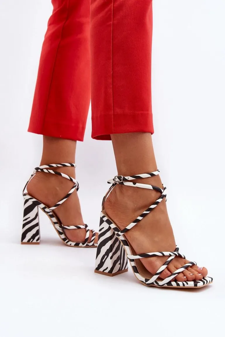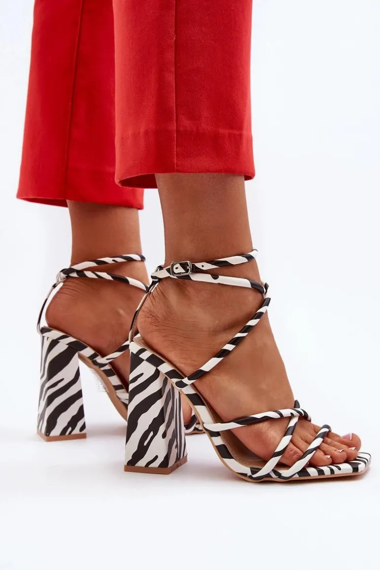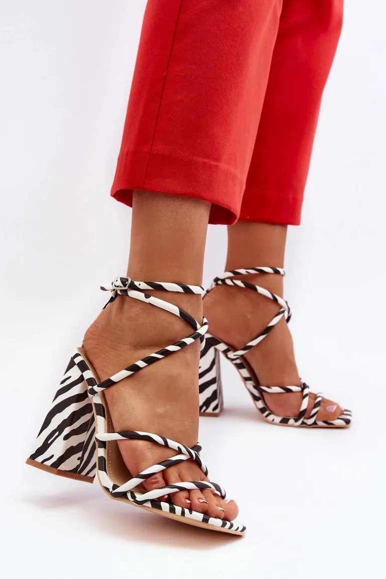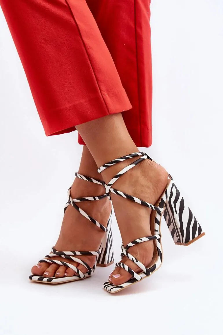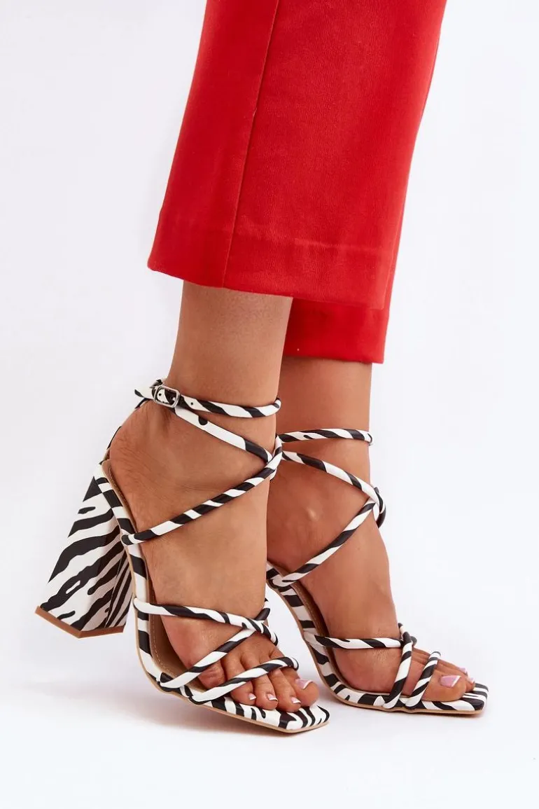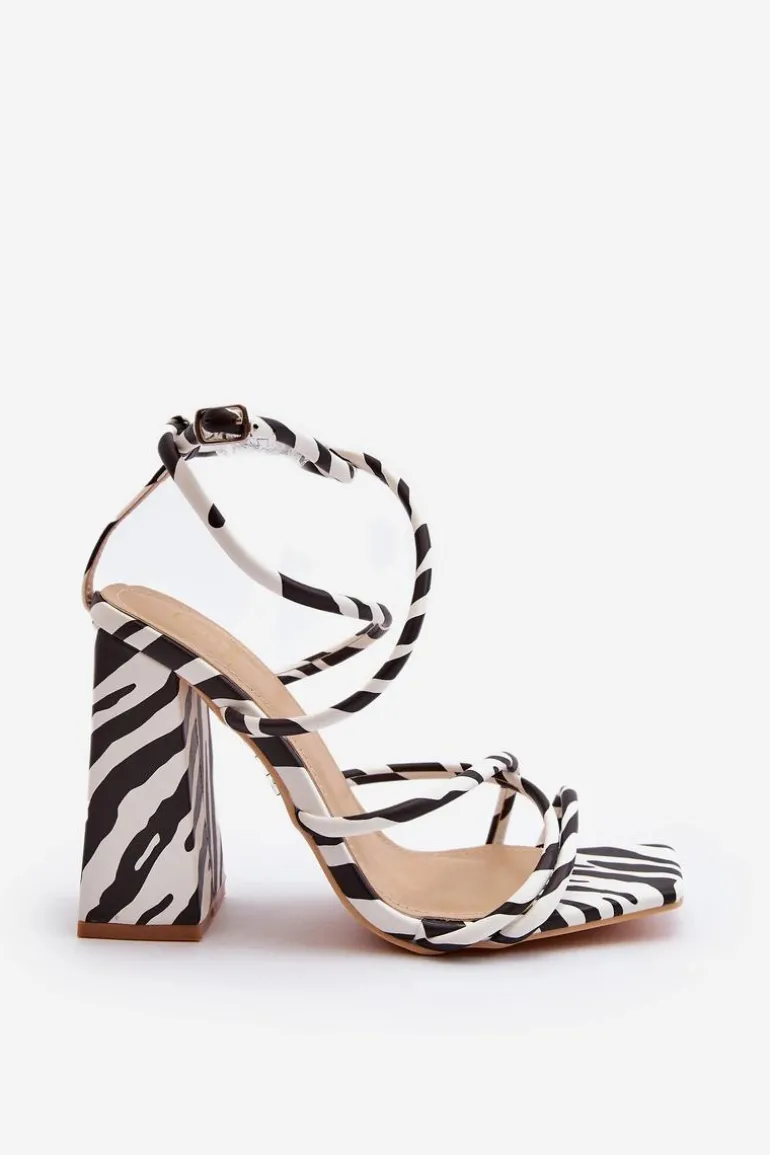 Modne Sandały Na Obcasie Biało-Czarne Josette
