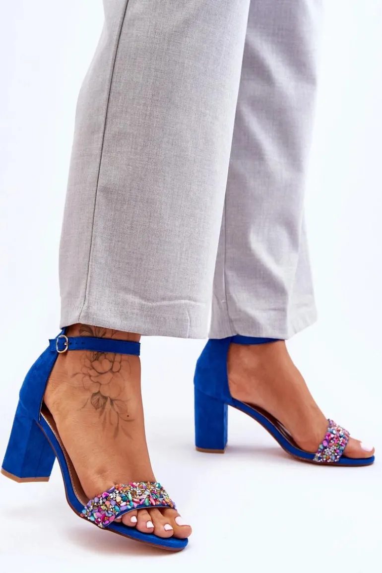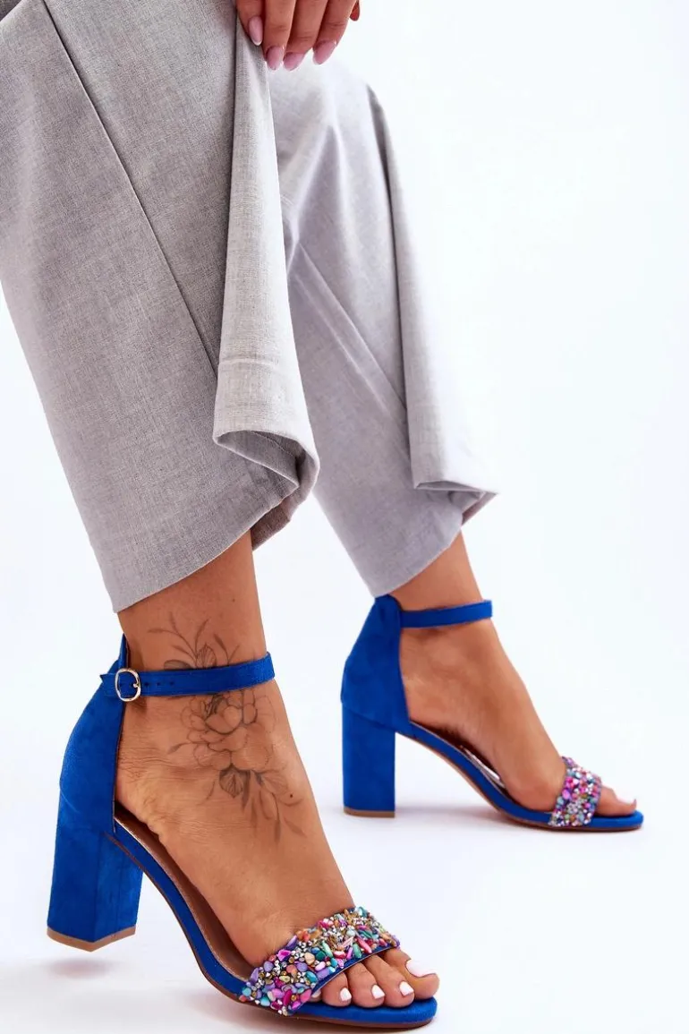 Modne Sandały Na Obcasie Z Ozdobnymi Kamieniami Niebieskie Love Me