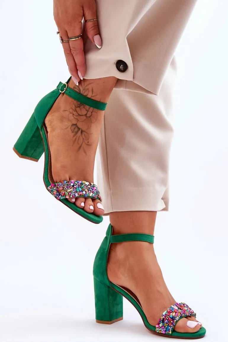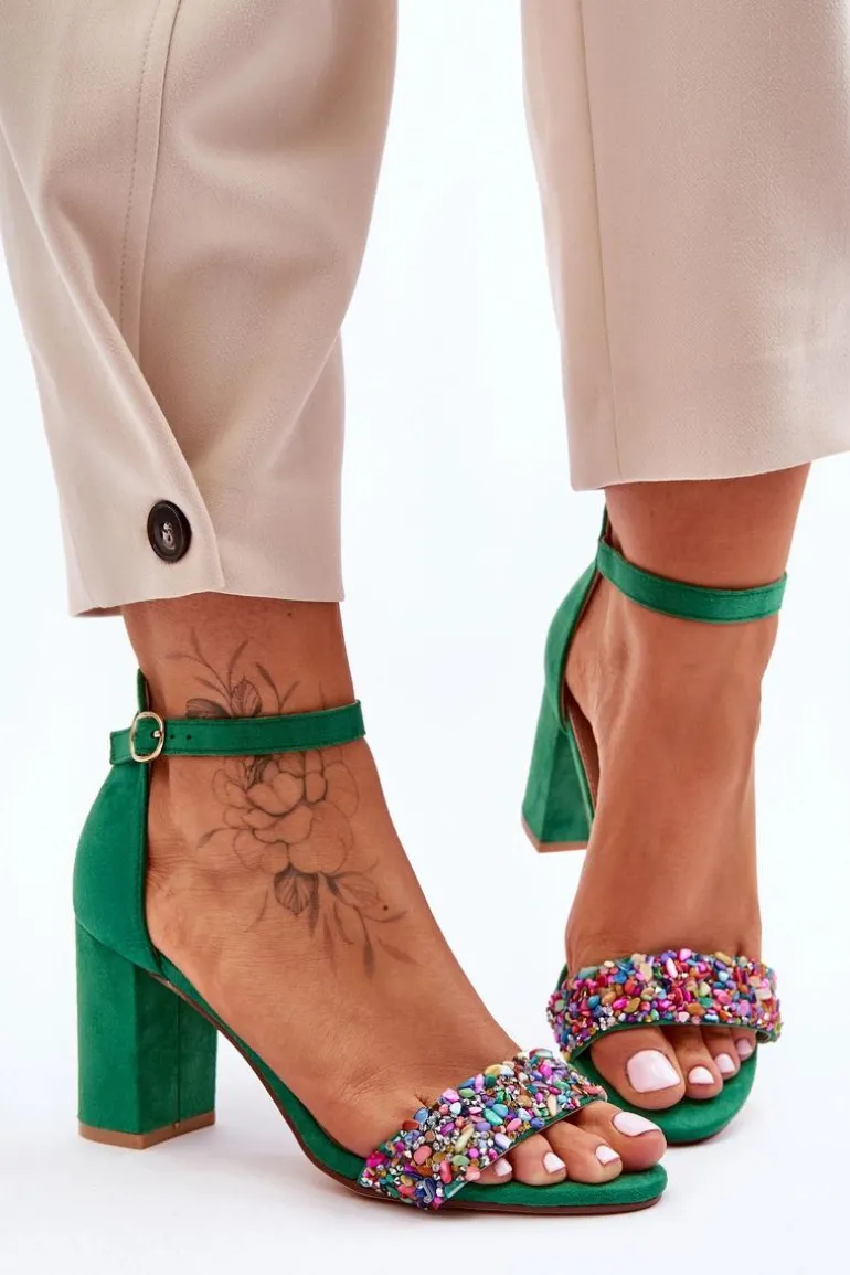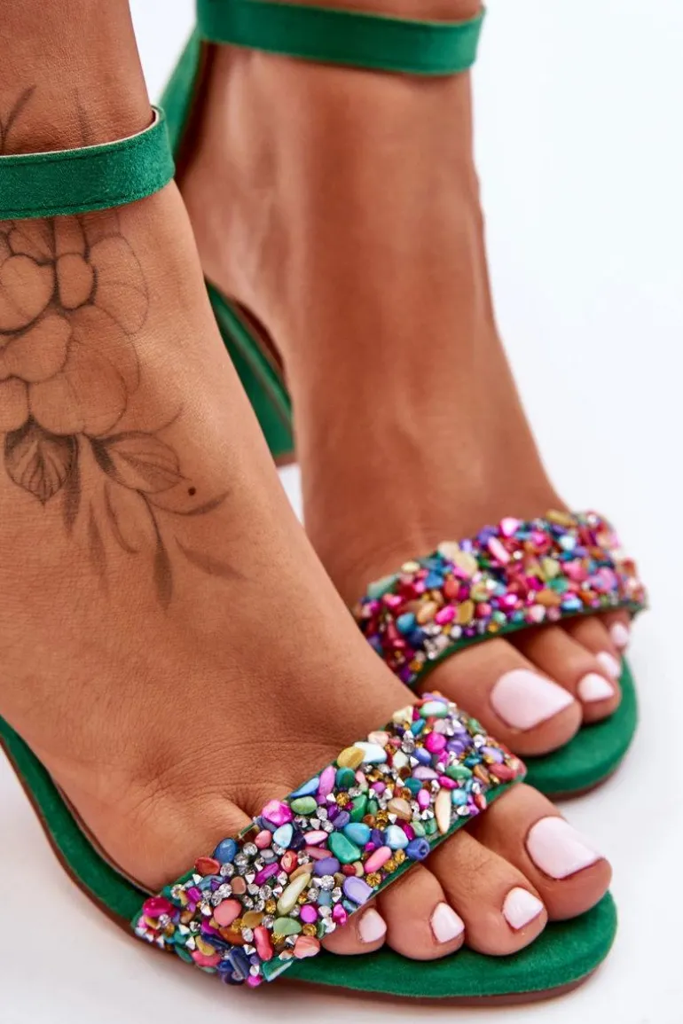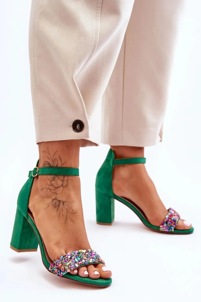 Modne Sandały Na Obcasie Z Ozdobnymi Kamieniami Zielone Love Me