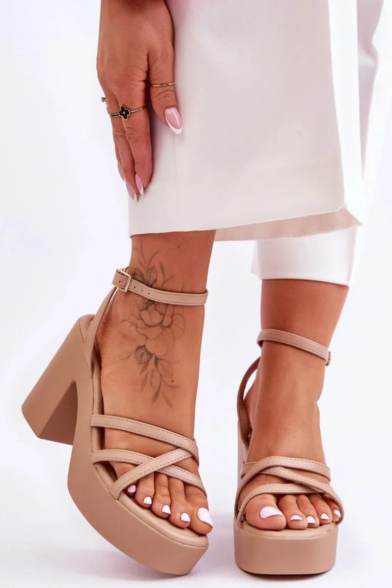 Wyjątkowe, damskie sandały zostały wykonane z eko skóry. Model ten posiada zapinanie wokół kostki na regulowany pasek ze sprzączką i jest niezwykle lekki. Sandałki osadzono na platformie oraz masywnym, szerokim słupku. Wygodna wkładka została wykonana także z eko skóry. Przy wyborze rozmiaru prosimy sugerować się tabelą rozmiarów.