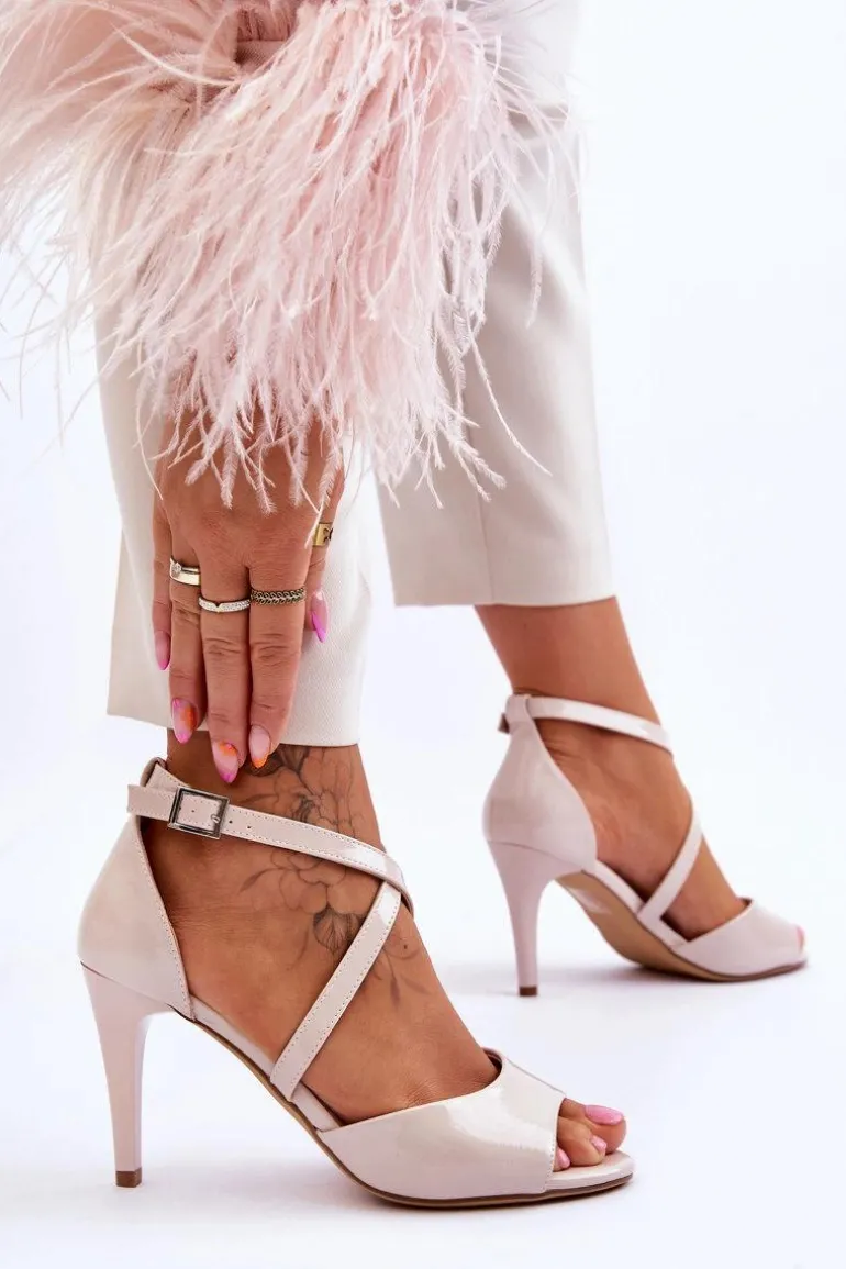 Modne Sandały Na Szpilce Lakierowane Beżowe Loressa
