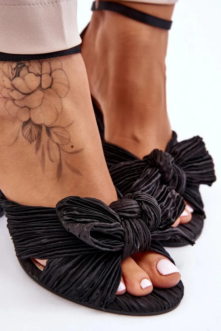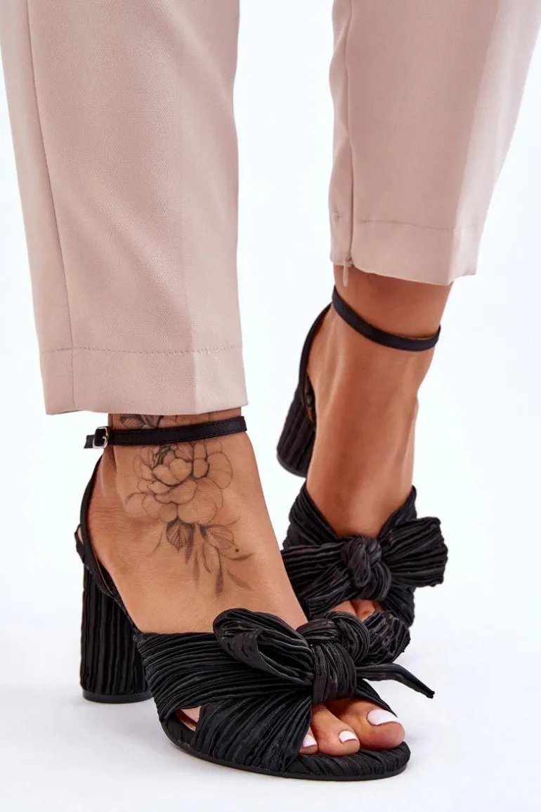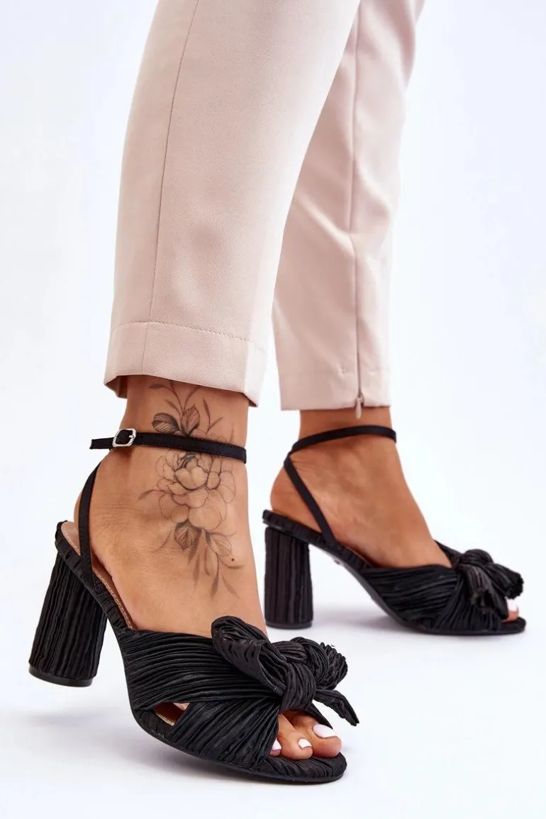 Wyjątkowe sandały na obcasie w postaci stabilnego słupka. Buty te posiadają z przodu kokardę, która dodaje tym butom elegancji. Miękka wkładka z eko skóry zadba o Twój komfort podczas użytkowania. Model ten świetnie sprawdzi się na różnego rodzaju ważnych uroczystościach. Ten model na pewno Ci się spodoba! Przy wyborze rozmiaru prosimy sugerować się tabelą rozmiarów.